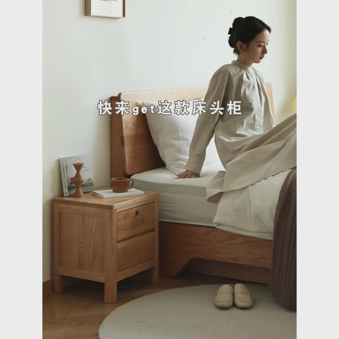Oak Solid Wood, Solid Rubberwood Nightstand with Locker.