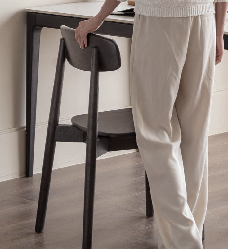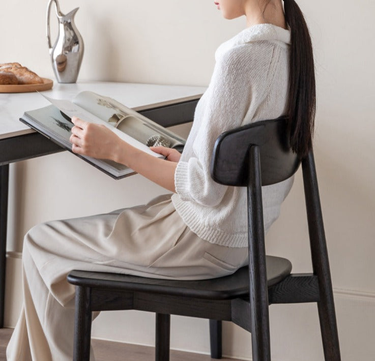 Classic solid wood dining chair, ancient French smoke needs to be painted and installed Curved wide backrest, using steam hot bending process Around the stool surface, chamfered and polished The legs are also smooth Let every contact be natural and at ease.