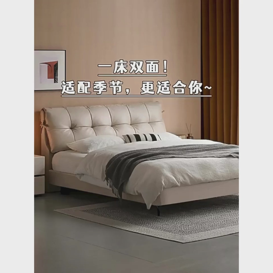 Luxury Genuine Leather Soft Headboard Bed, American Style Riveted Bed