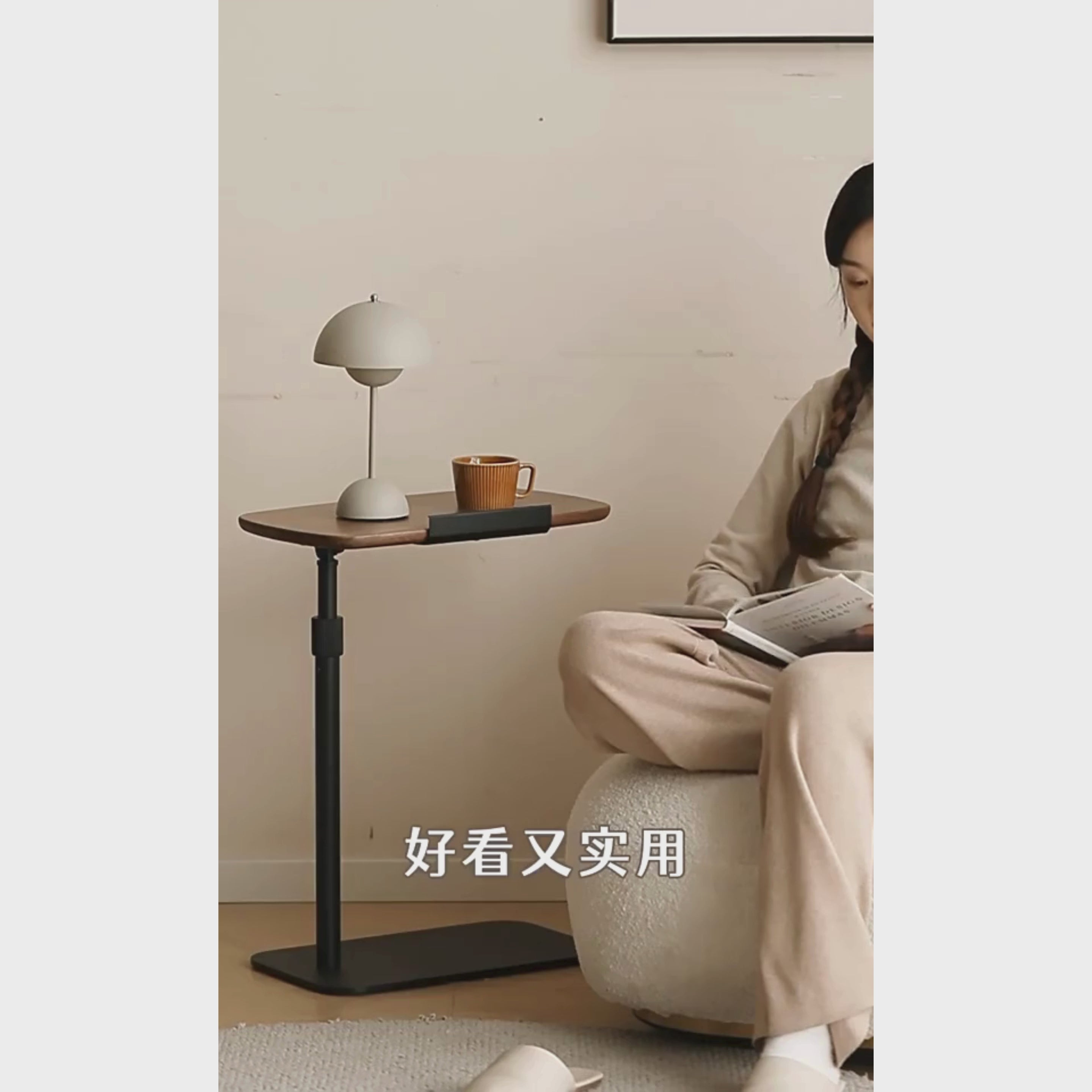 Black Walnut Solid Wood Liftable Rotating Side Table
