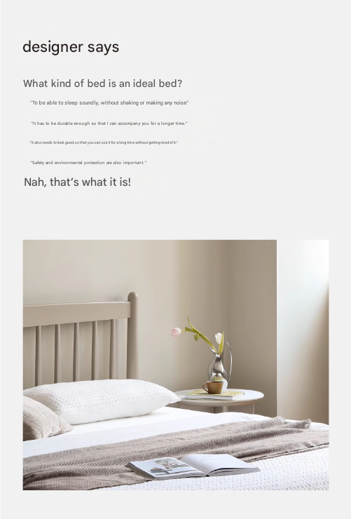 What kind of bed is an ideal bed? "To be able to sleep soundly, without shaking or abnormal noise" "It must be durable enough, and I hope it can last longer" "The appearance must also be good- looking, so that it can be used for a long time" “Safety and environmental protection are also very important” Na na, it is such an existence!