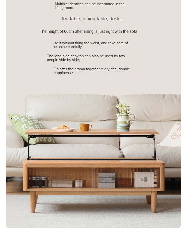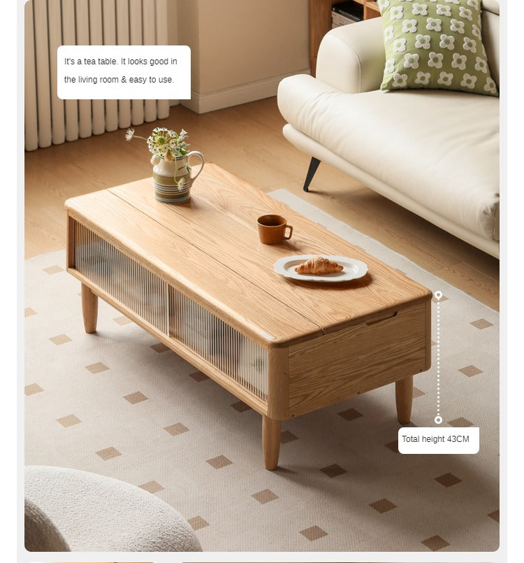 Oak Solid Wood Modern Slate Lifting Coffee Table
