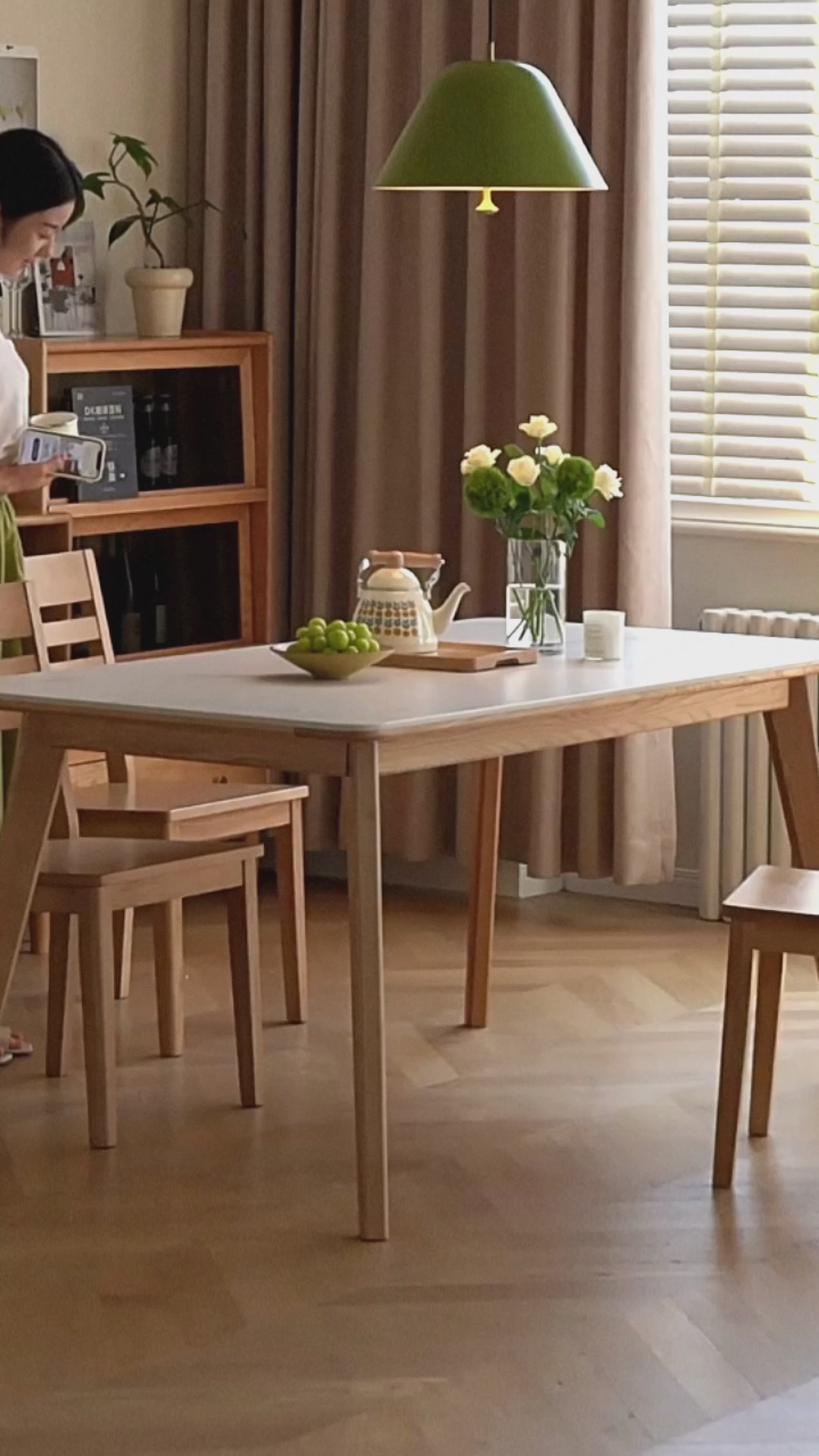 The sturdy and durable slate dining table is here~ The characteristics of slate make it not afraid of high temperatures, scratches, and oil stains, making it easier to take care of, and it will not deform after long-term use. Pure solid ash wood frame at the lower end of the slate Don’t be afraid no matter how hard you put it, it can hold a table full of delicious dishes.