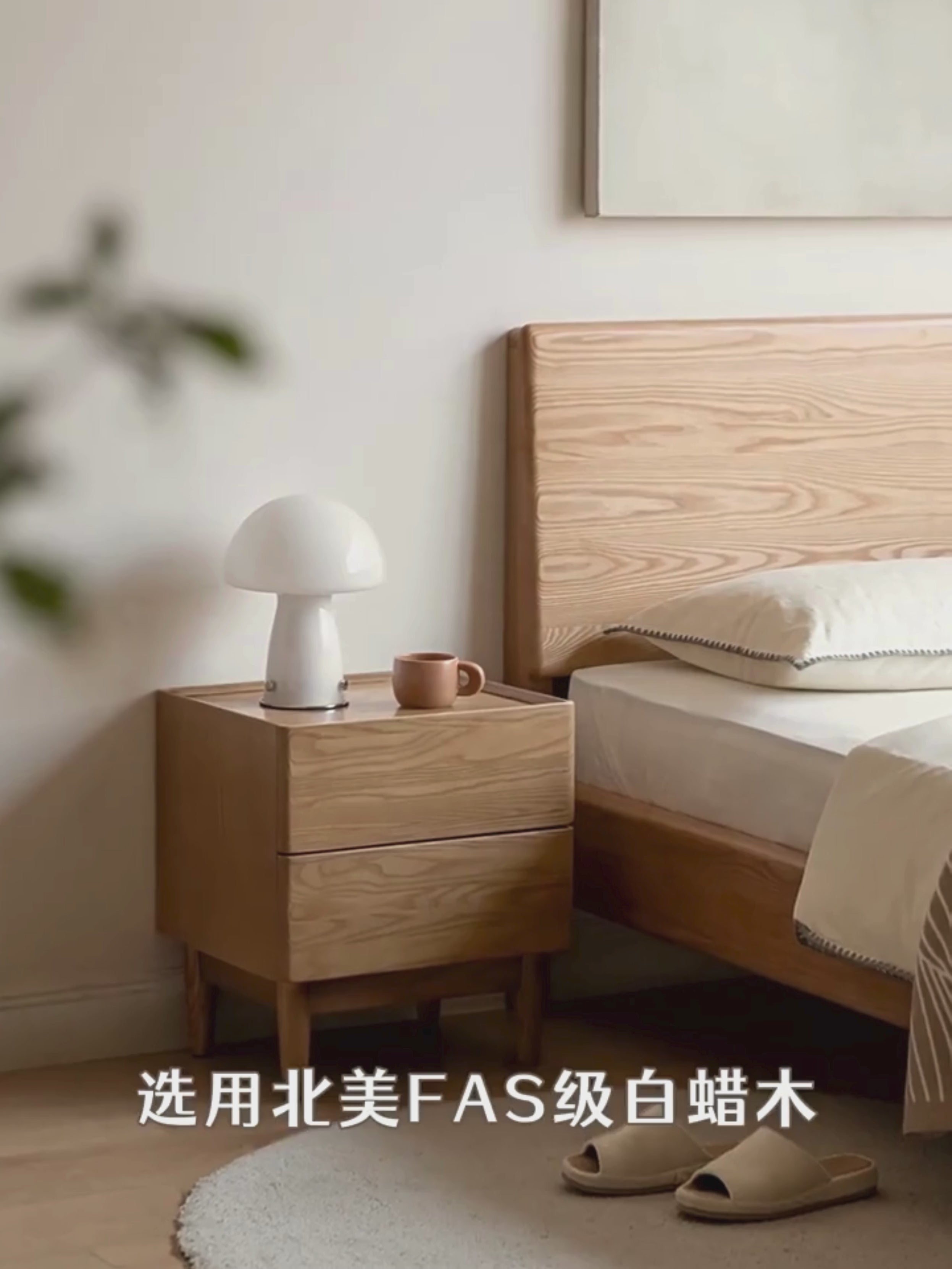 Ash, Oak, Sandalwood Solid Wood White Wax Small Nightstand