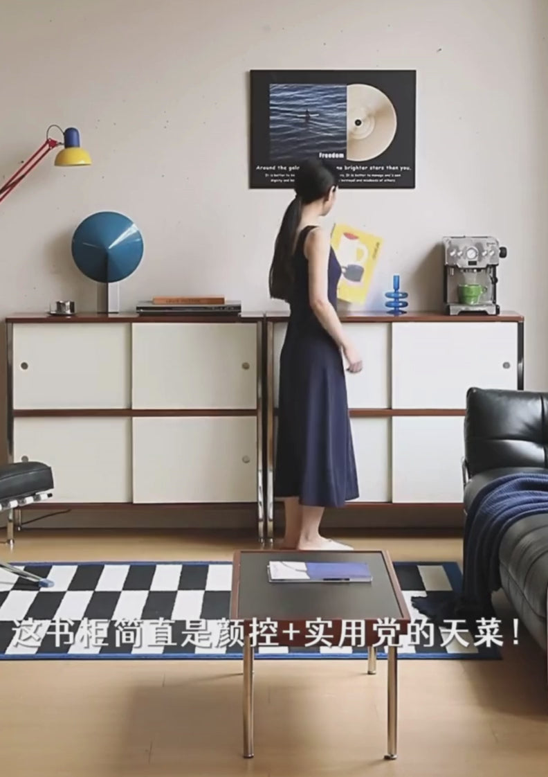 This bookcase combines bold solid poplar wood with glossy stainless steel, featuring geometric cuts for a modern, three-dimensional look. It offers a fresh Bauhaus-inspired design that breaks away from classic industrial styles.