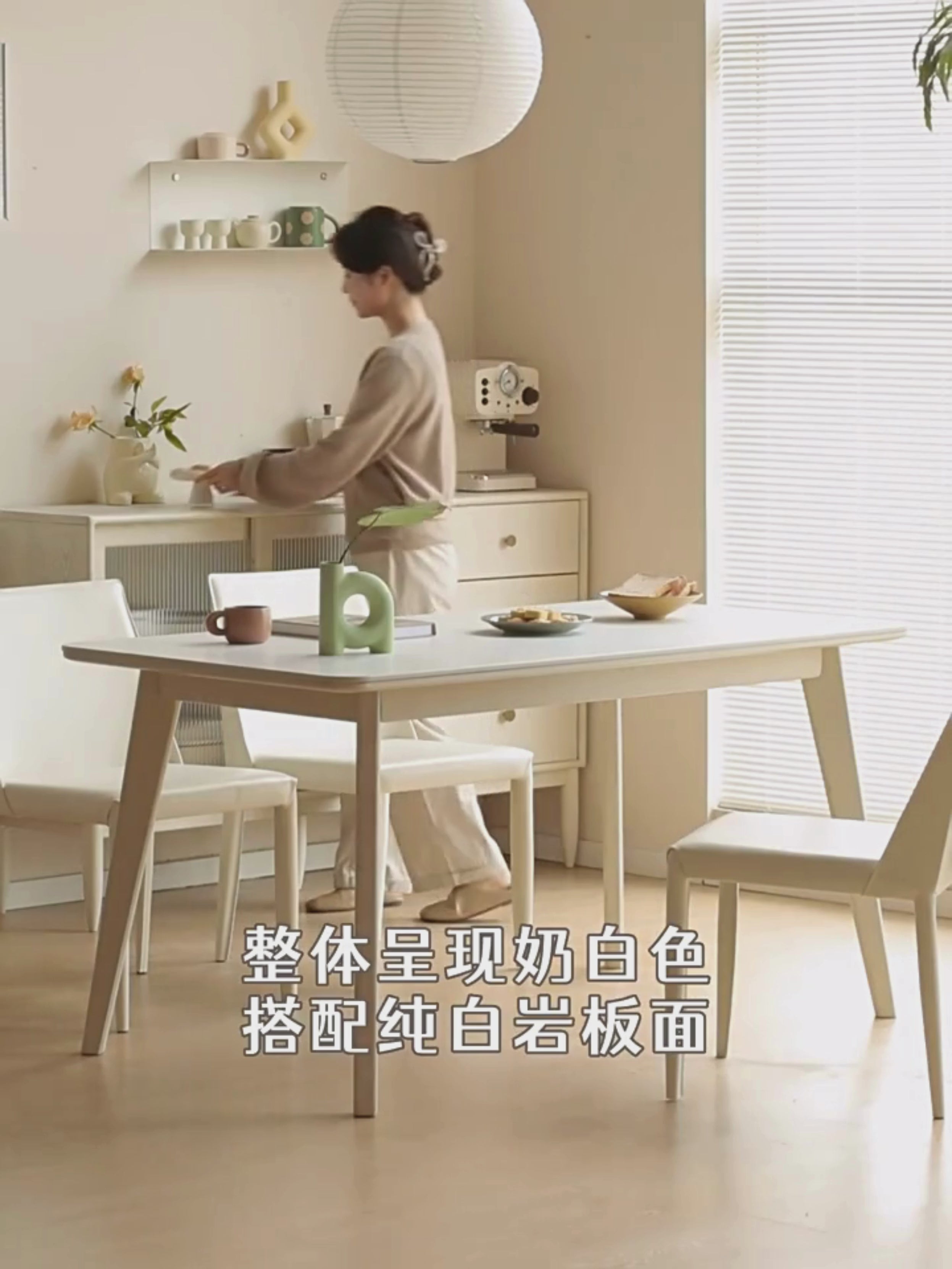 Polar white slate dining table, the cream style that attracts you at first sight √Stone tabletop, stain-resistant and easy to care for √Pure solid wood frame, stable and durable √High-looking cream style, versatile and versatile A nice-looking and useful dining table When you eat, you will feel happier~