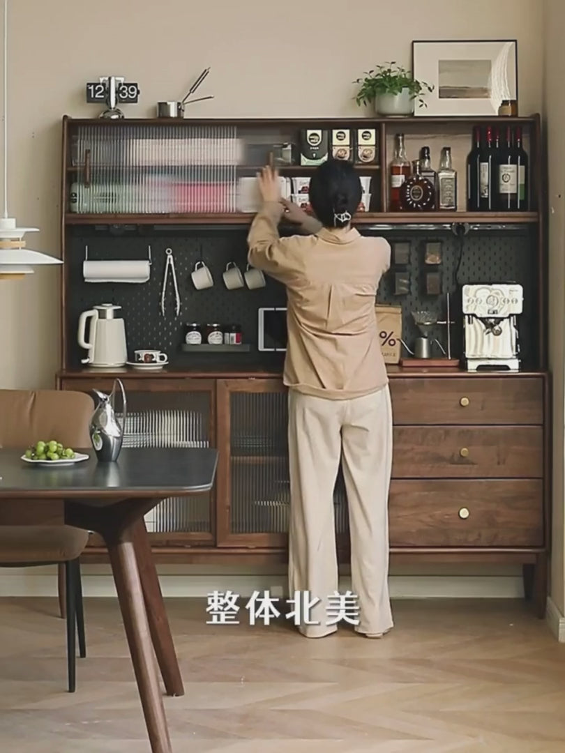 Black Walnut Solid Woof Sideboard Integrated High Cabinet Glass