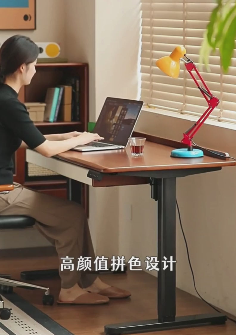 Poplar Solid Wood Antique Style Office Desk With Electric Lift