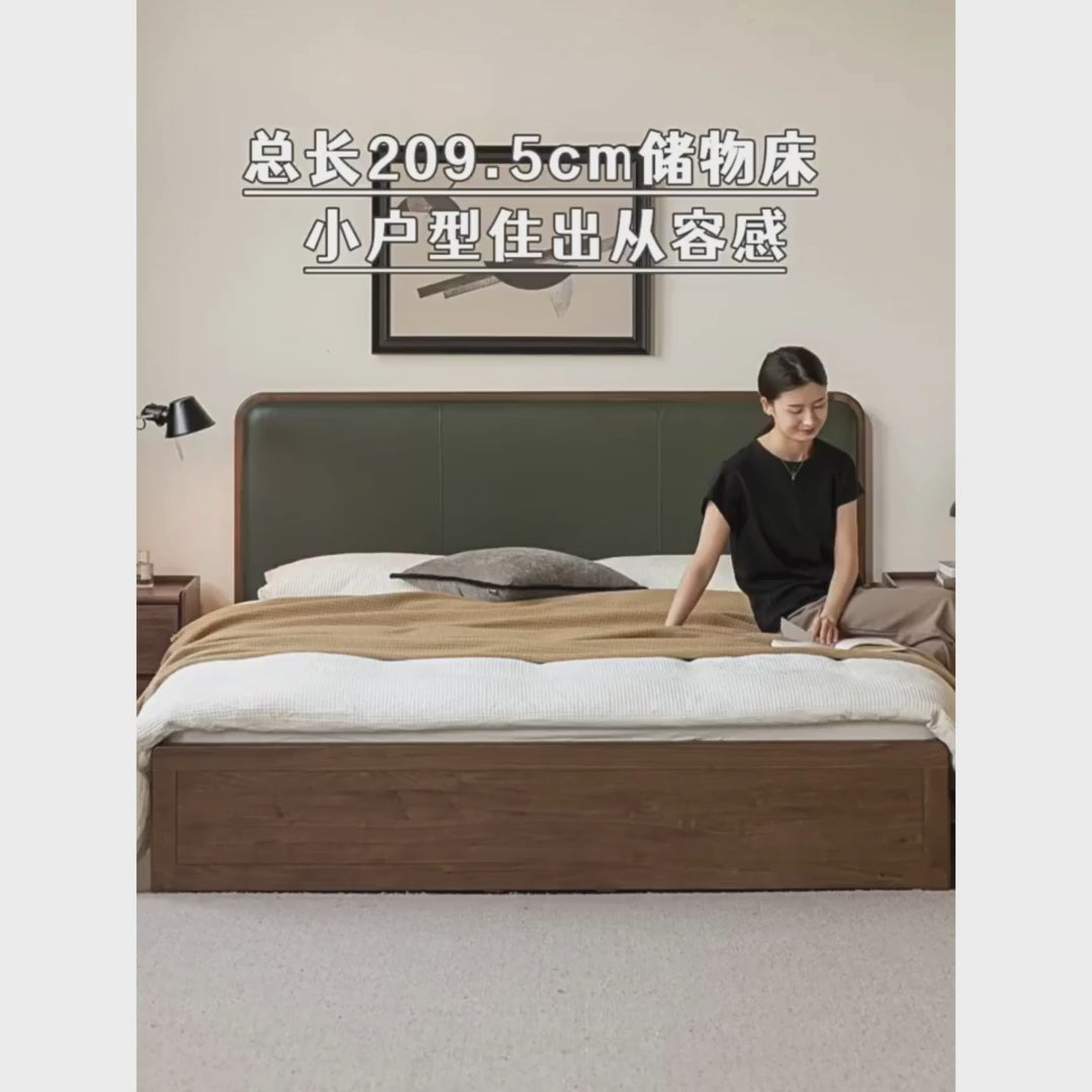 Black Walnut Solid Wood Box Bed — Soft Headboard, Italian Light Luxury Genuine Leather Bed