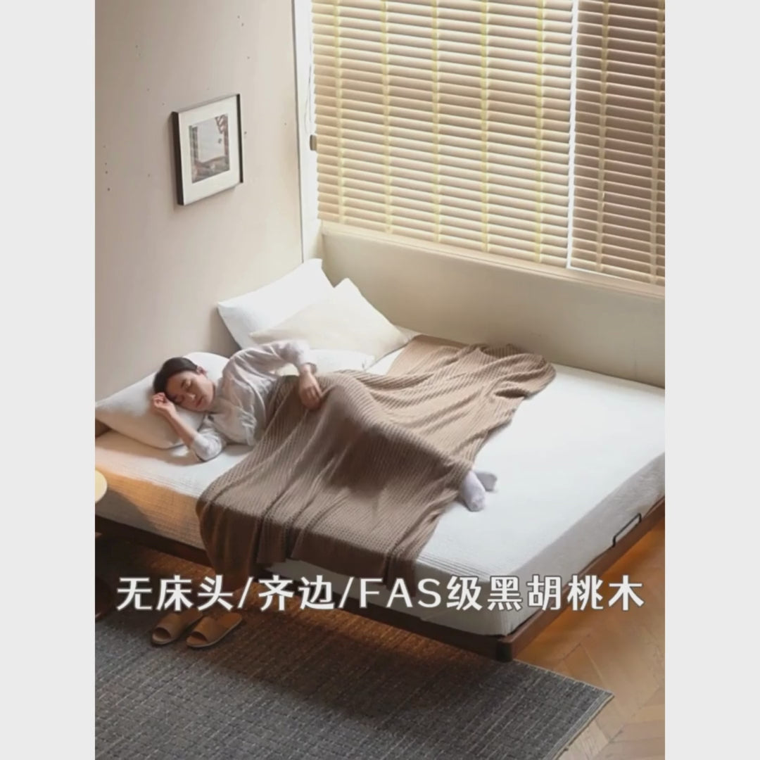 Black Walnut, Oak Solid Wood platform bed, headboard-free Suspended Bed