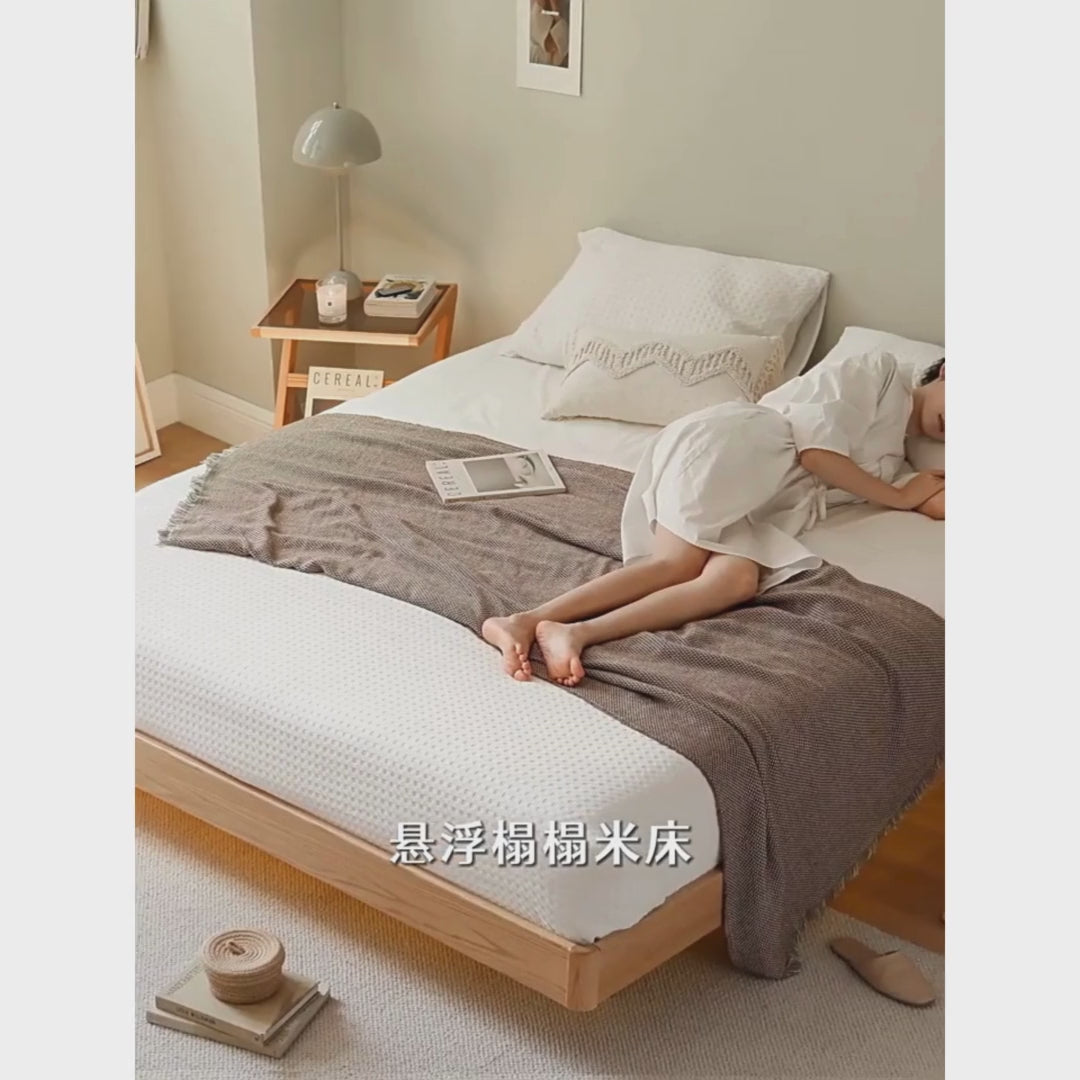 Black walnut solid wood platform bed, headboard-free suspended bed