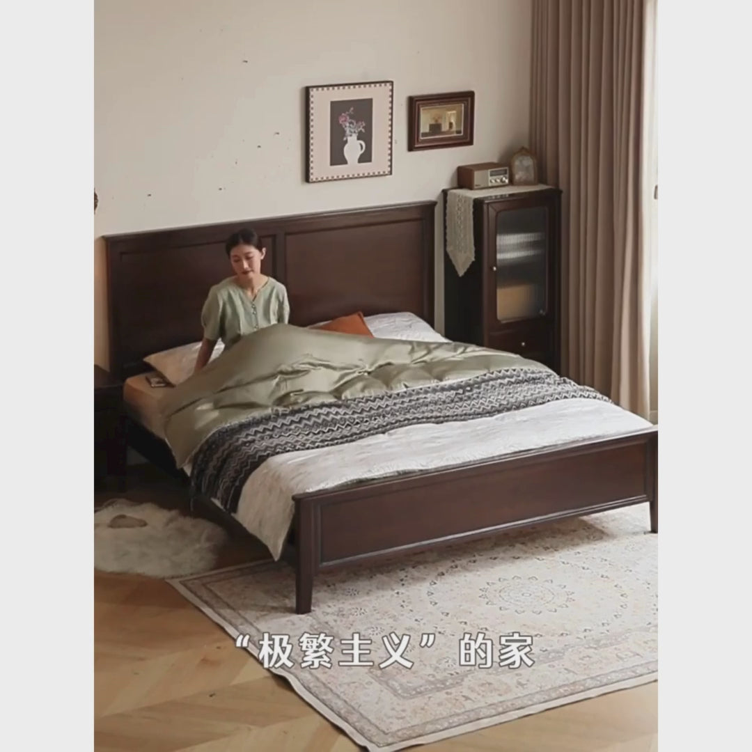 The 70cm high brim and high backrest are intertwined with the "mirror-like" deep walnut color to create a timeless American-style high-quality bed.