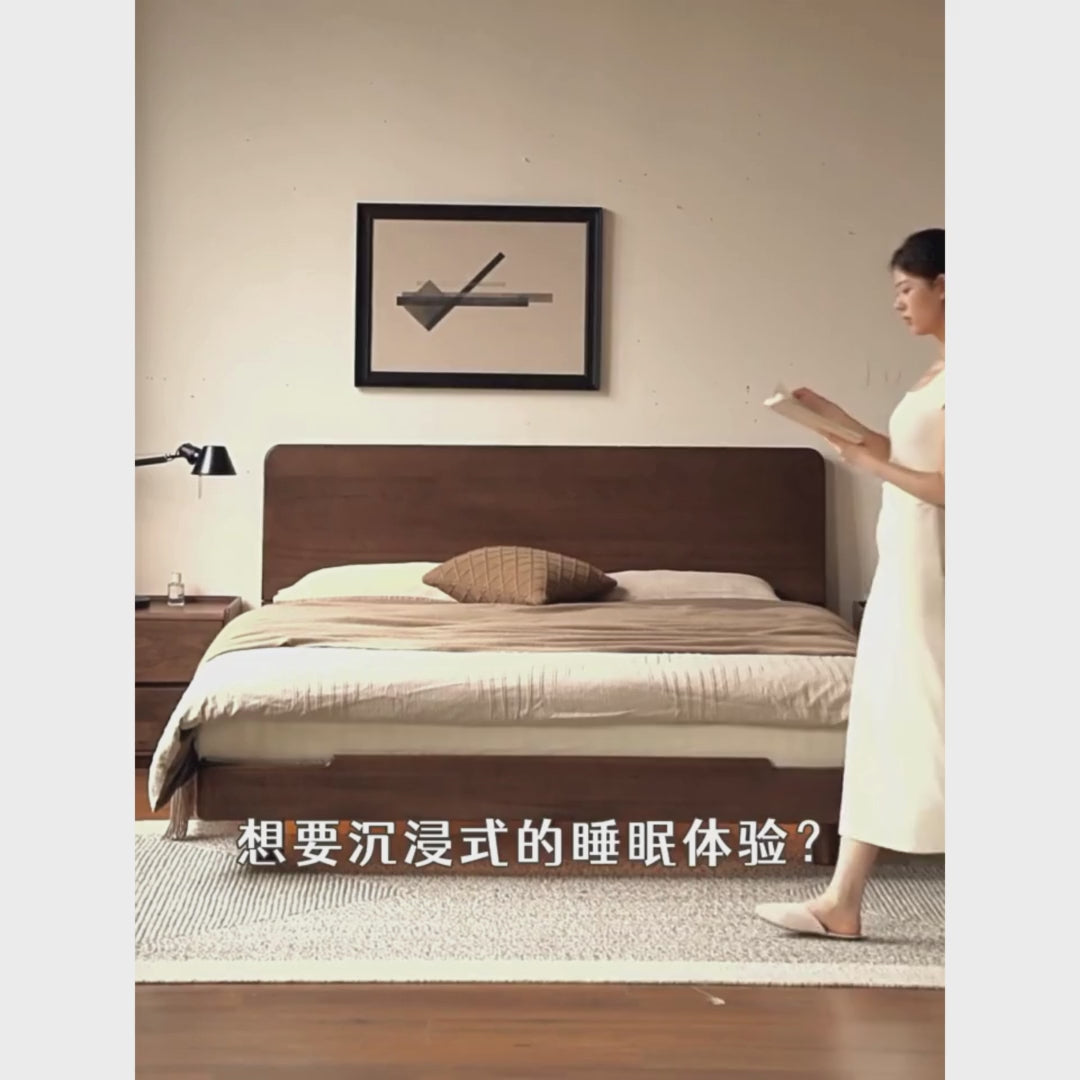 Teak solid wood Modern Simple Luminous Multifunctional Bed