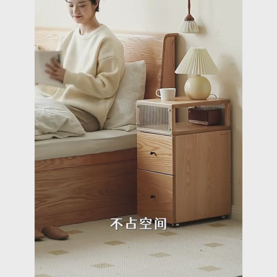 Oak Solid Wood wheel nightstand Narrow with Light)
