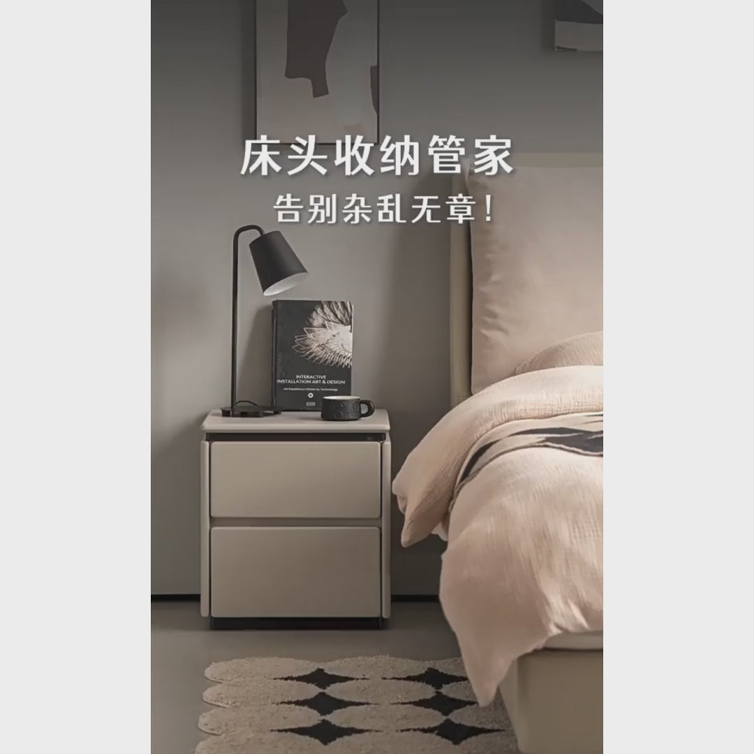 Poplar Solid Wood Gray Light Luxury Nightstand.