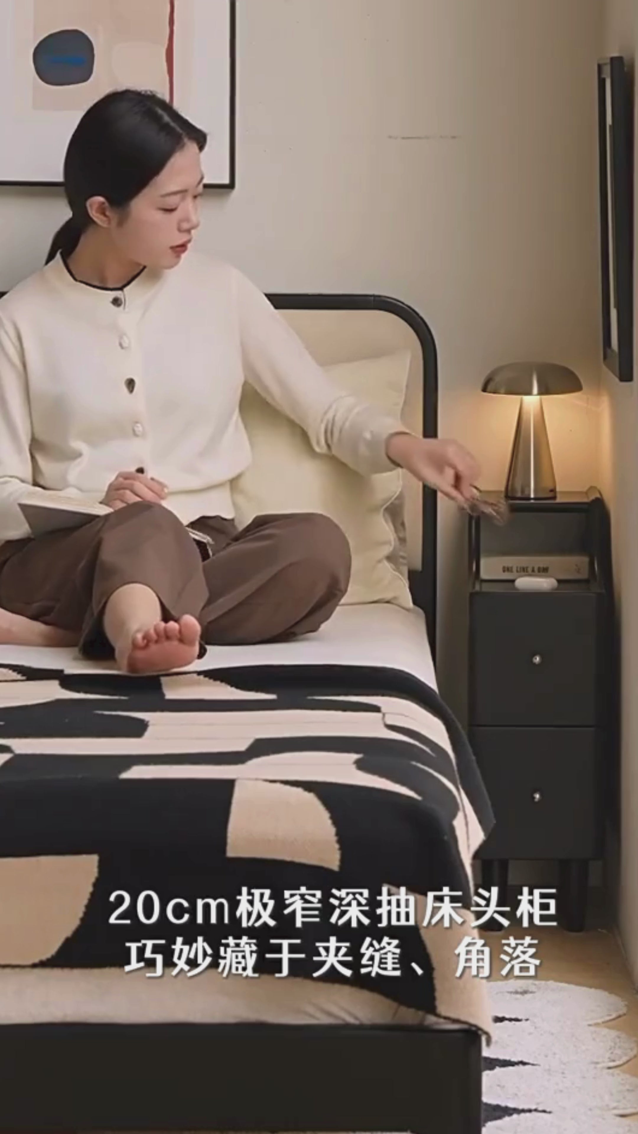 Solid RubberWood Ultra-Narrow Nightstand Storage Cabinet