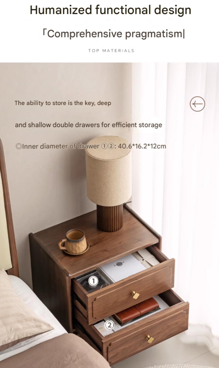 Black Walnut, Oak Solid Wood Nightstand.