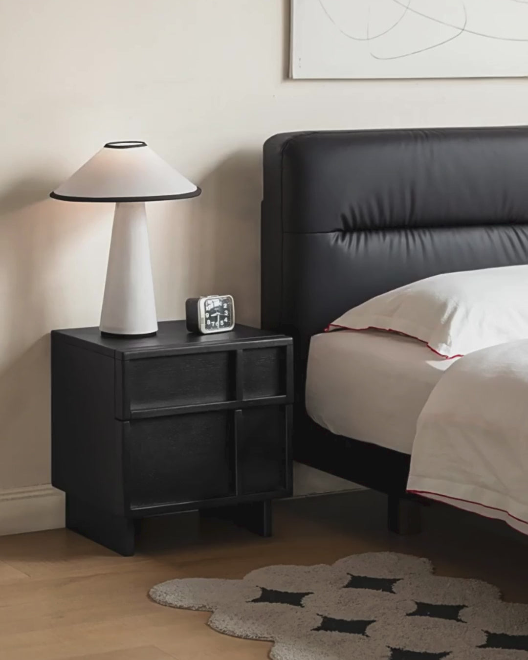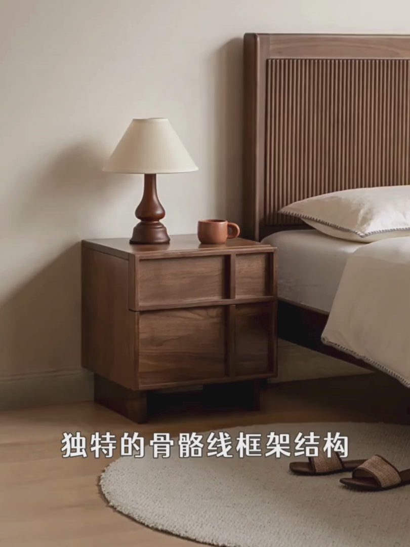 Oak Solid Wood Modern Black Storage Nightstand ,