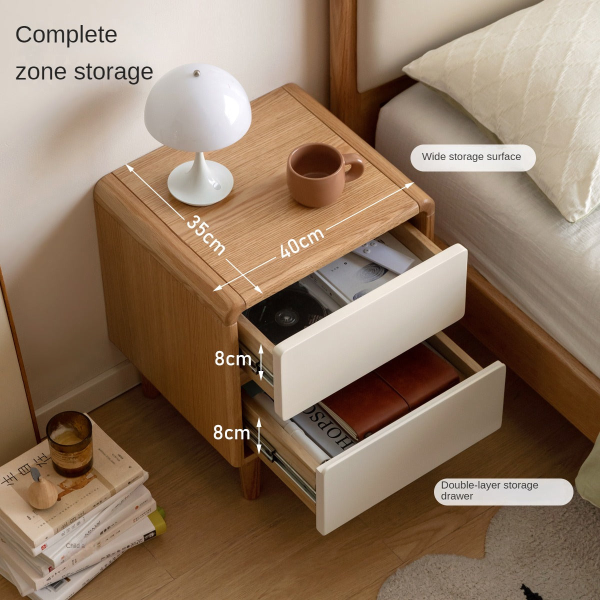 That the bedside table with its own bookshelf can be raised to make effective use of vertical space. It really refreshed my knowledge! Double the storage capacity Open layout, easy to take Really a master of bedside storage.