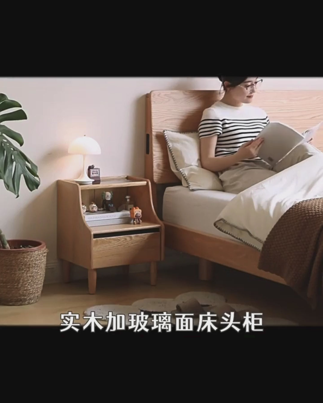 Oak Solid Wood, Solid Rubberwood Glass Nightstand