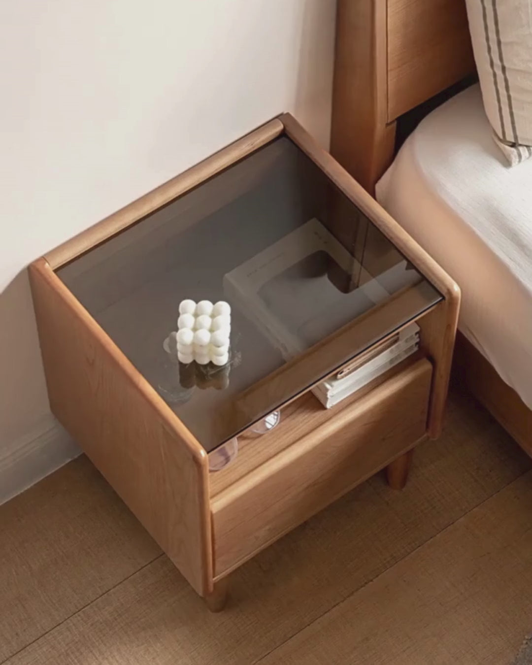 Cherry, Ash Solid Wood Small Nightstand.