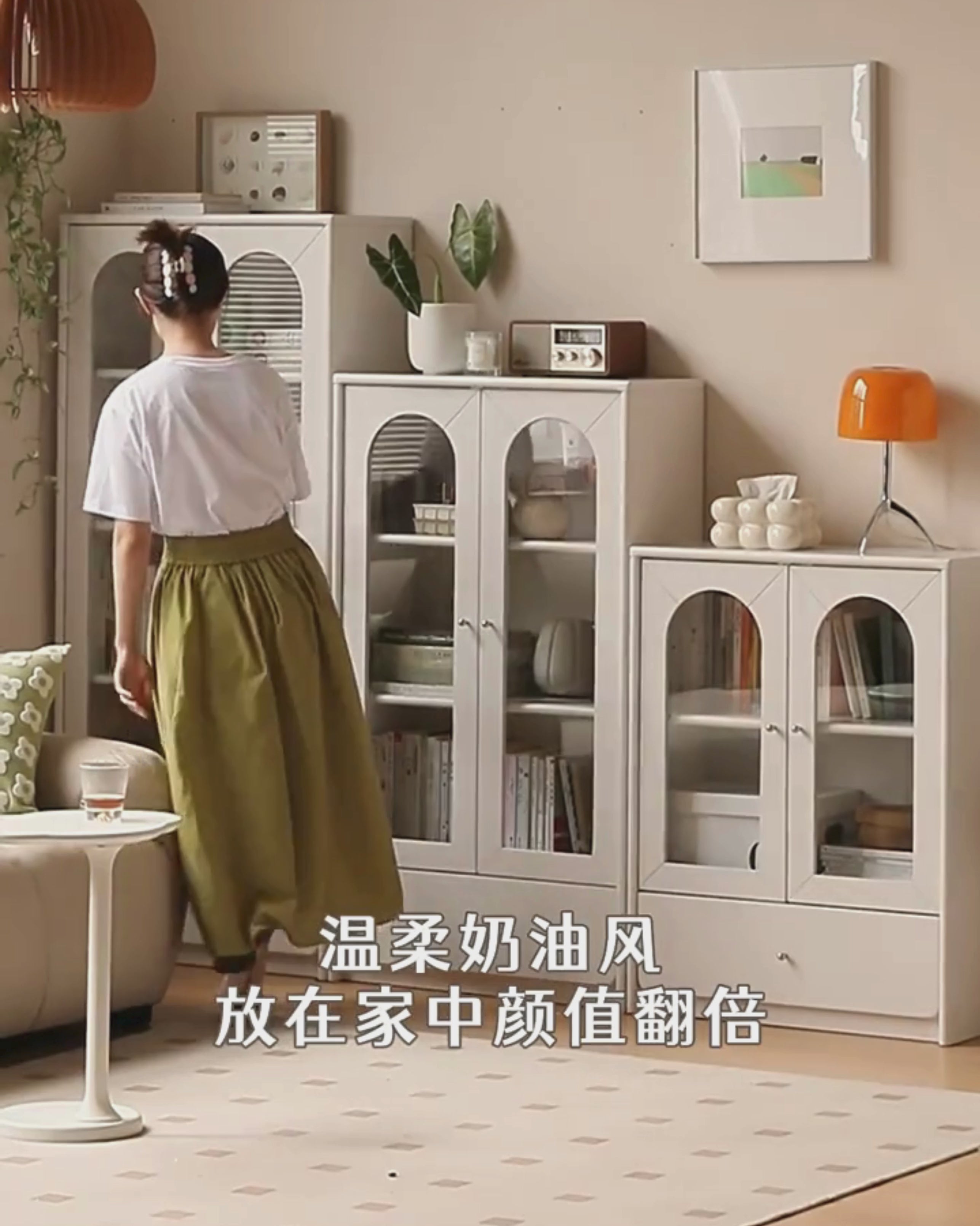 Rubberwood, Ash Solid Wood Bookcase With Door Bookshelf French Cream Style