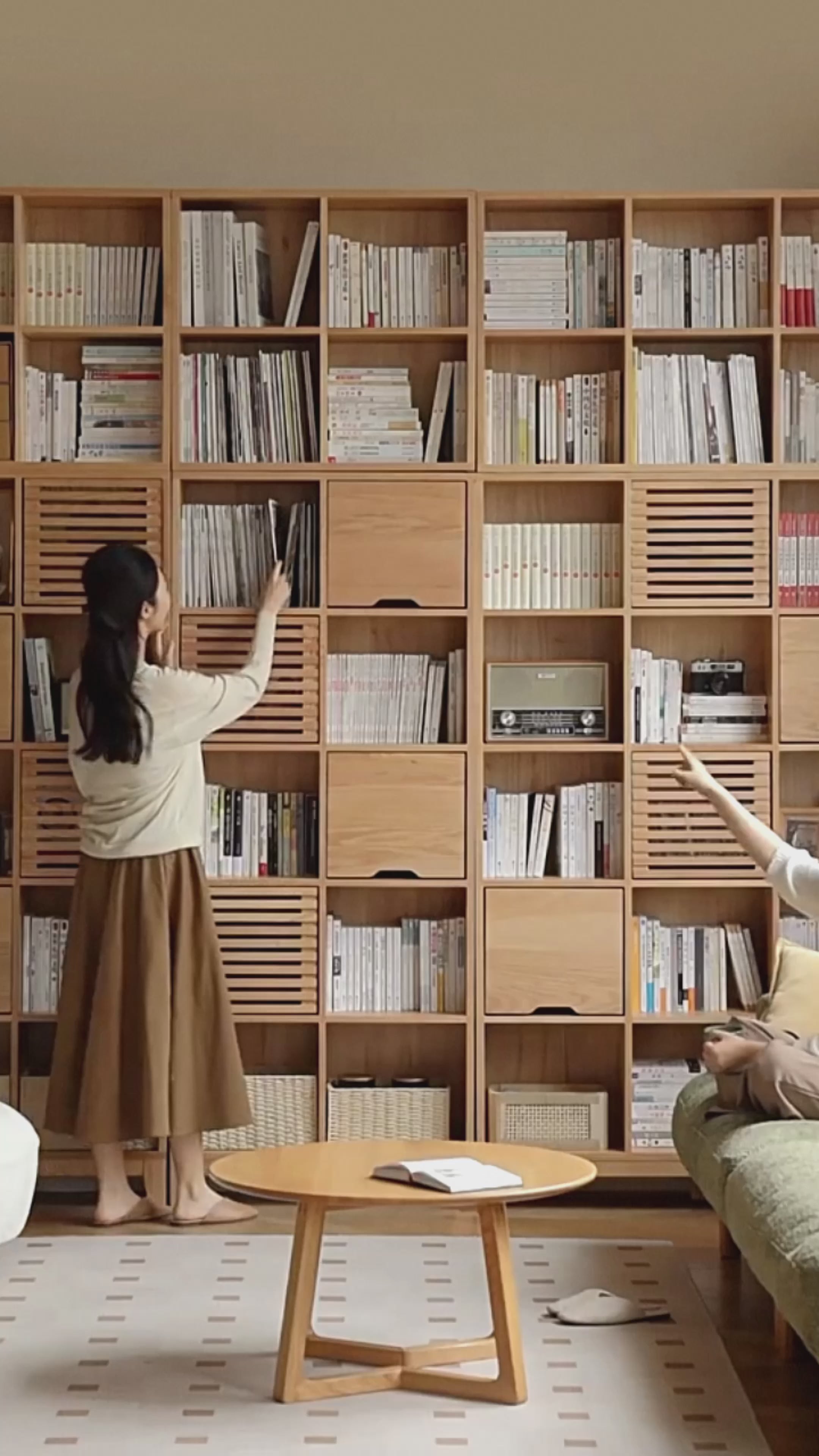 Oak Solid Wood Floor To Ceiling Bookshelve