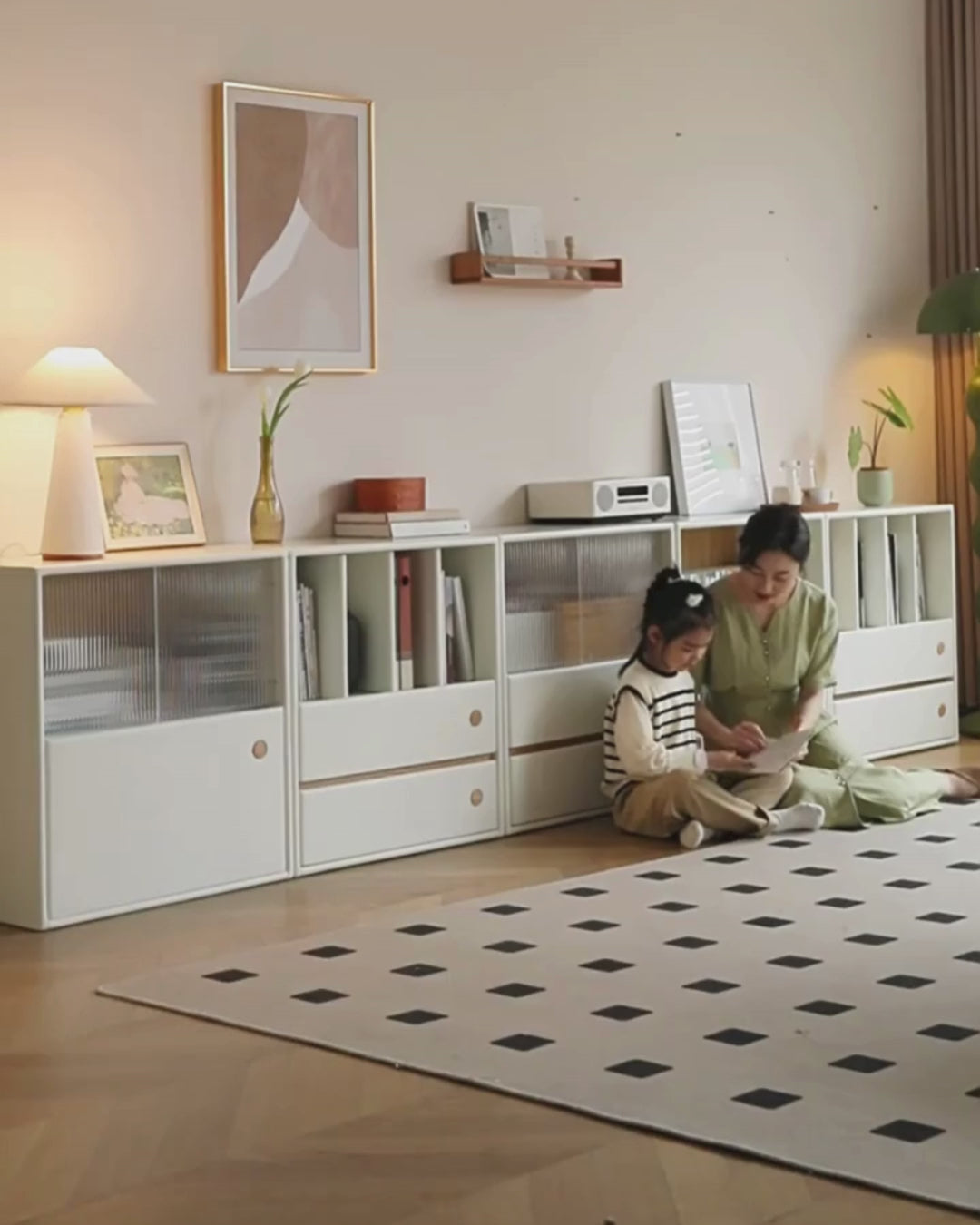 Solid Rubberwood, Poplar Solid Wood Multi-function Bookcase.
