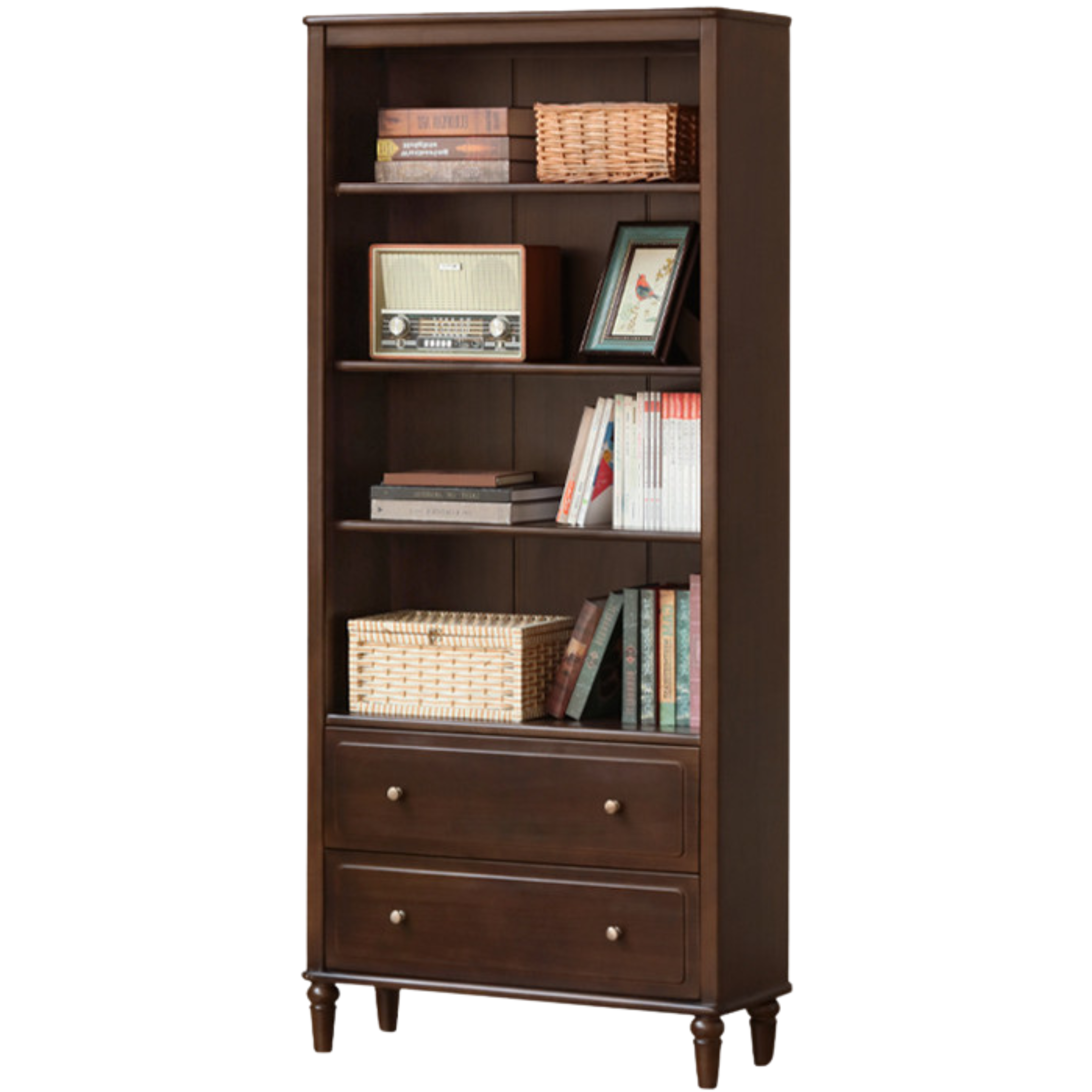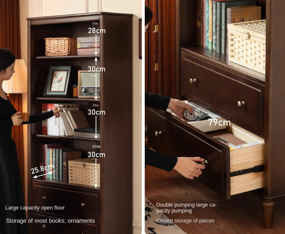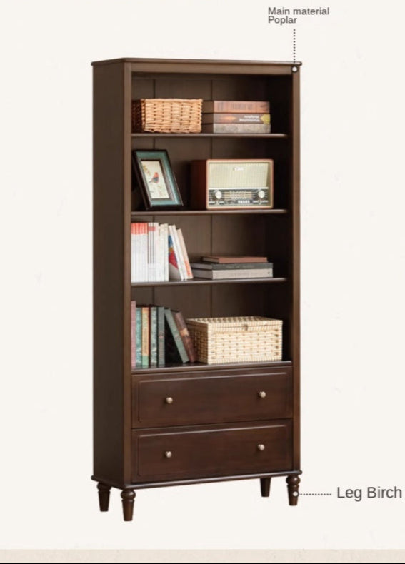 Poplar, Black Walnut Solid Wood American Retro Bookcase.