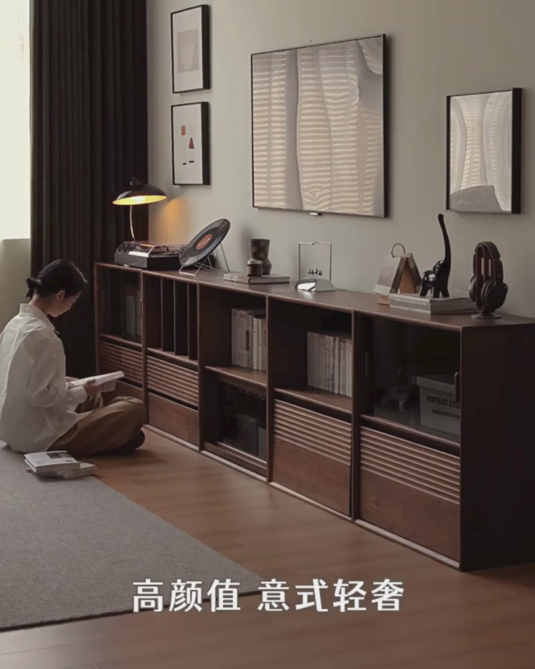 Sandalwood, Oak, Black Walnut Solid Wood Light Luxury Style Module Bookcase