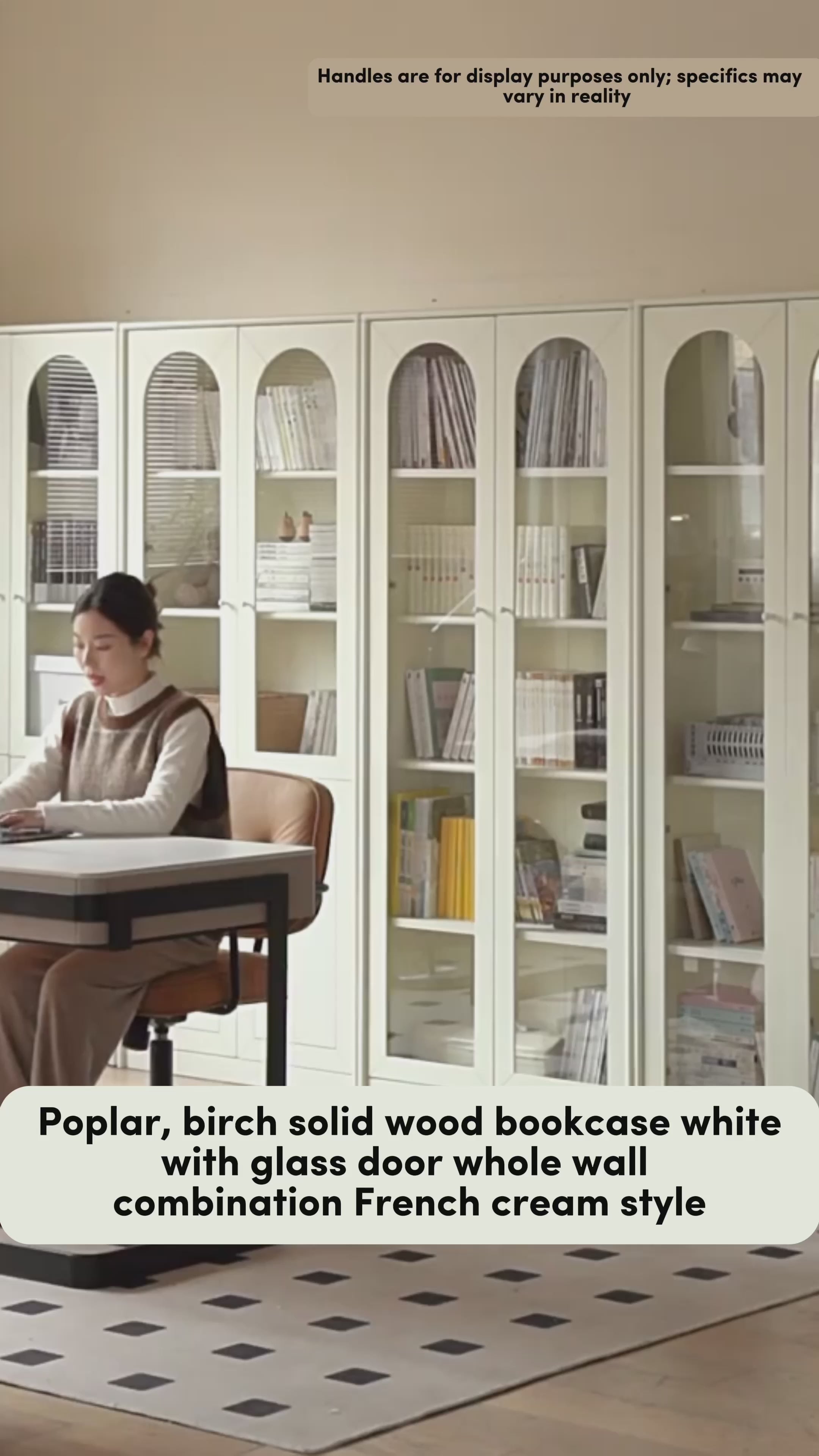 Poplar Solid Wood Bookcase White With Glass Door Whole Wall Combination French Cream Style