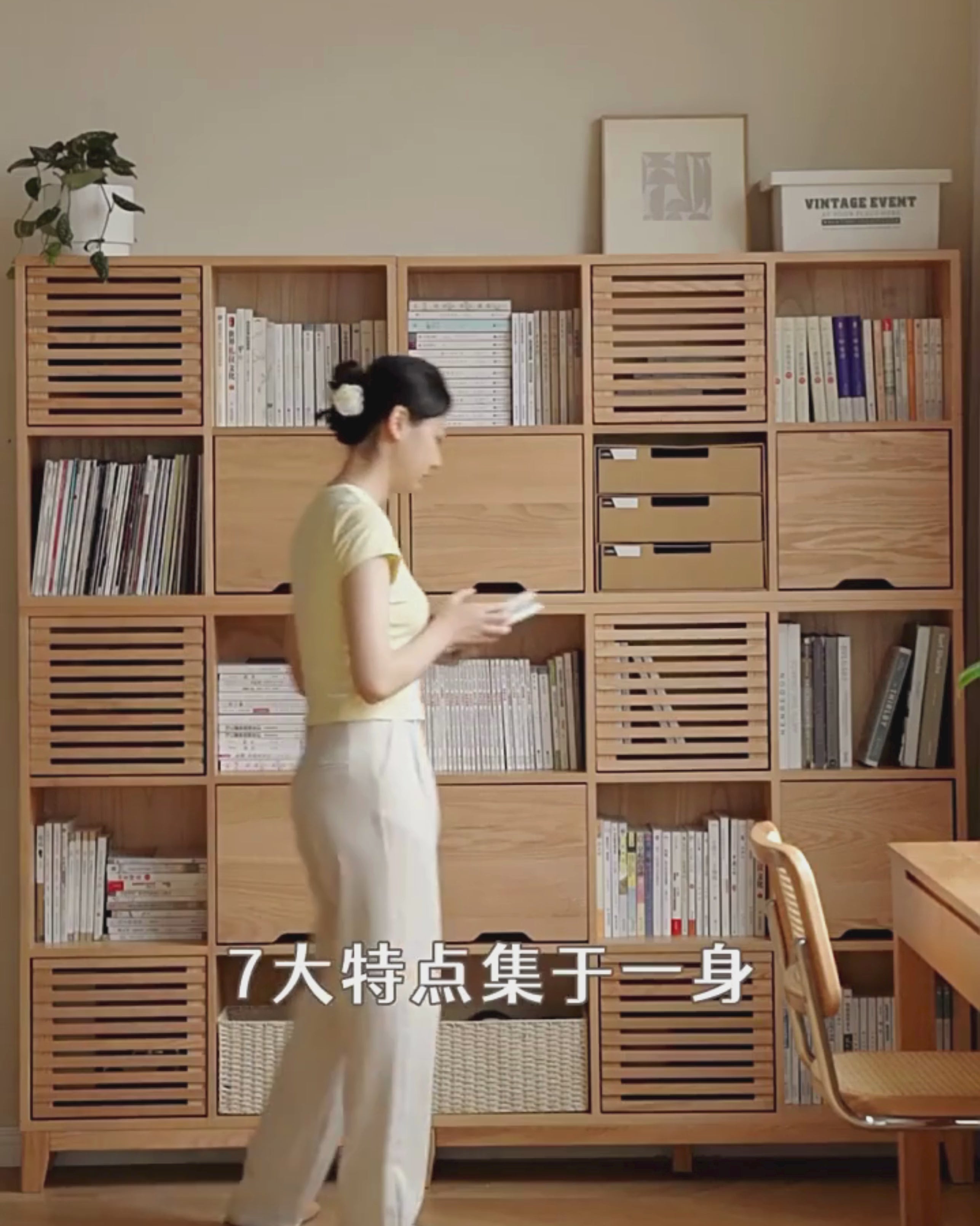 Oak Solid Wood Bookshelf Free Combination Floor-to-ceiling Lattice Cabinet