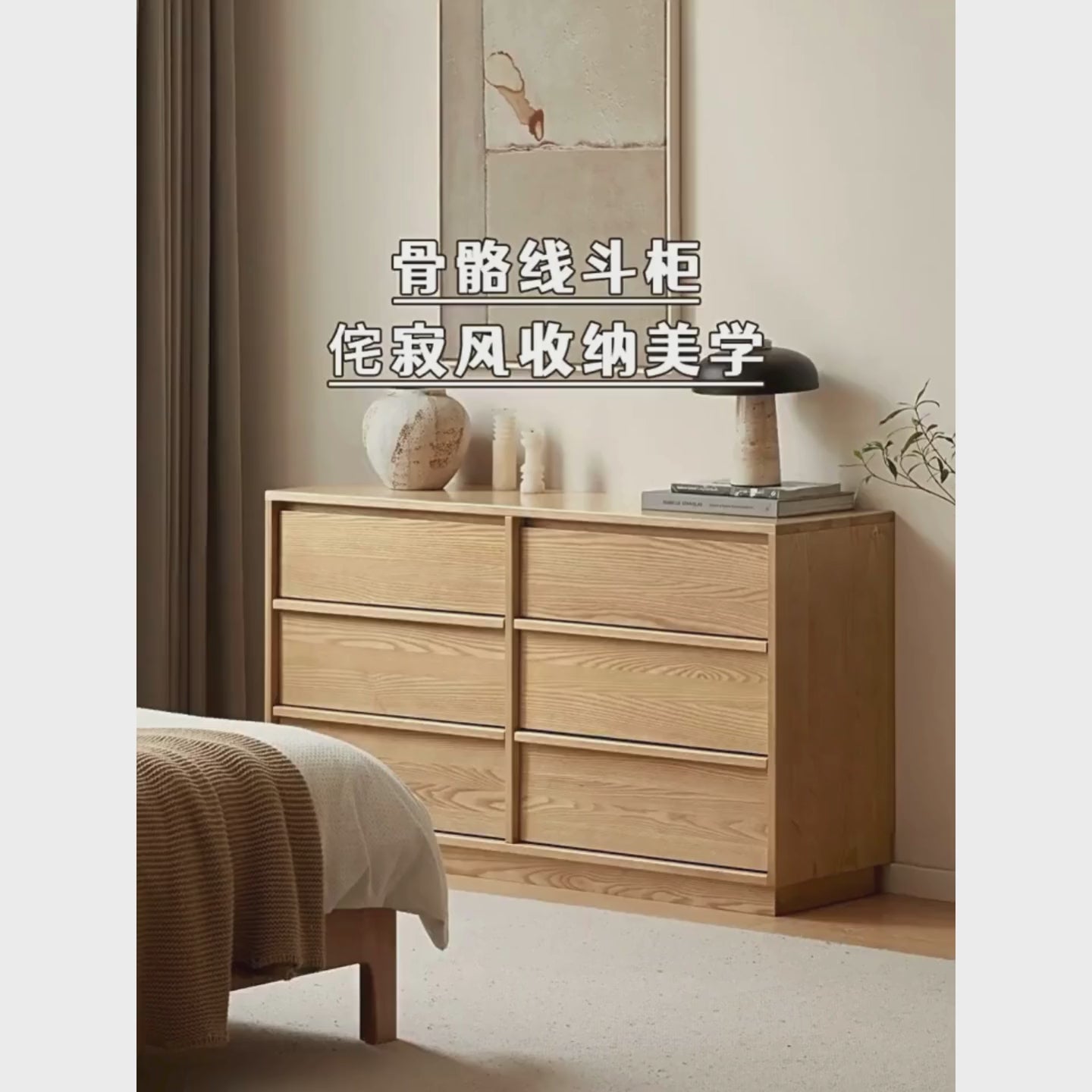 Ash, Oak Solid Wood Wabi-sabi Style Chest Of Drawers