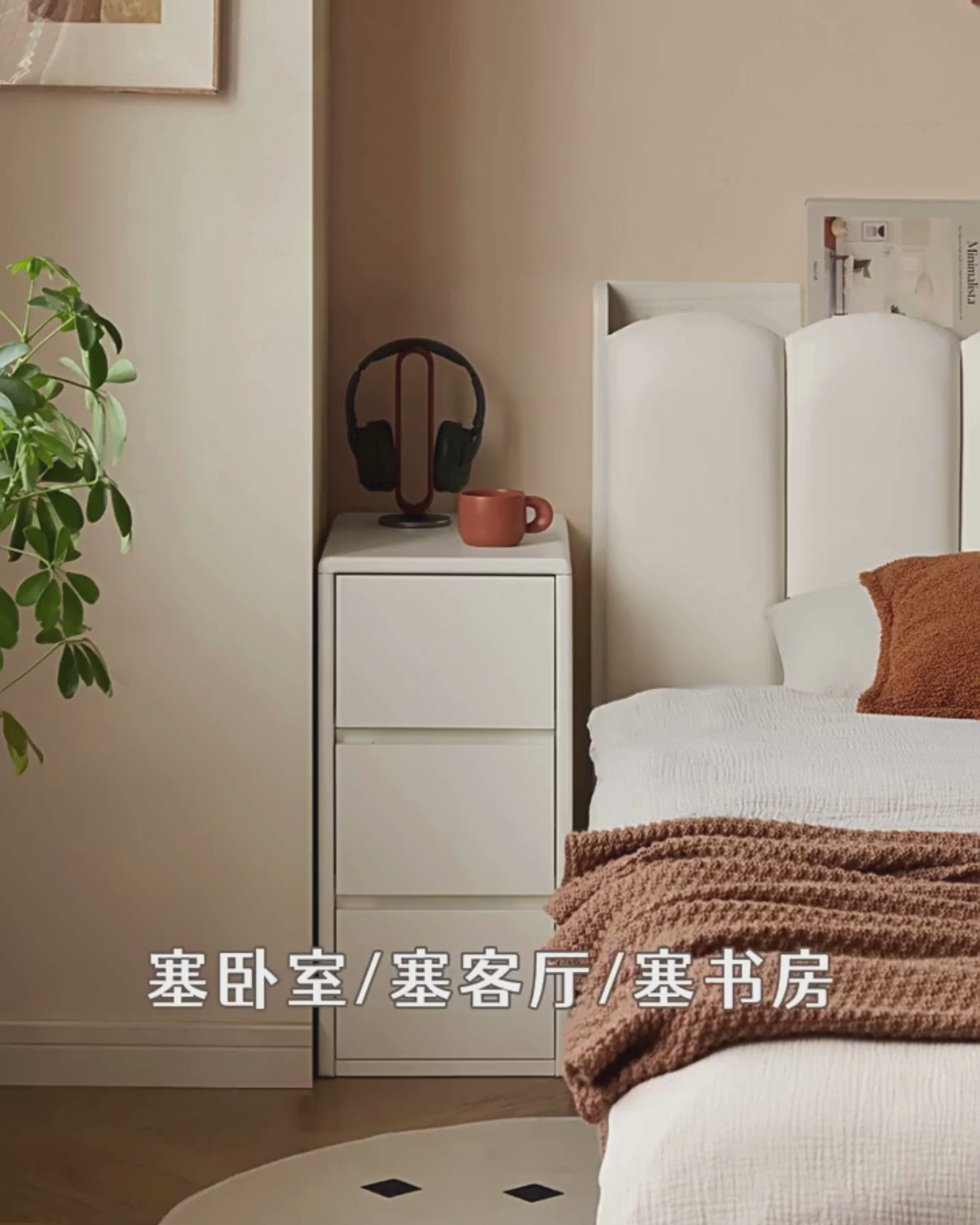 Poplar, Solid Rubberwood White Drawer Storage Cabinet