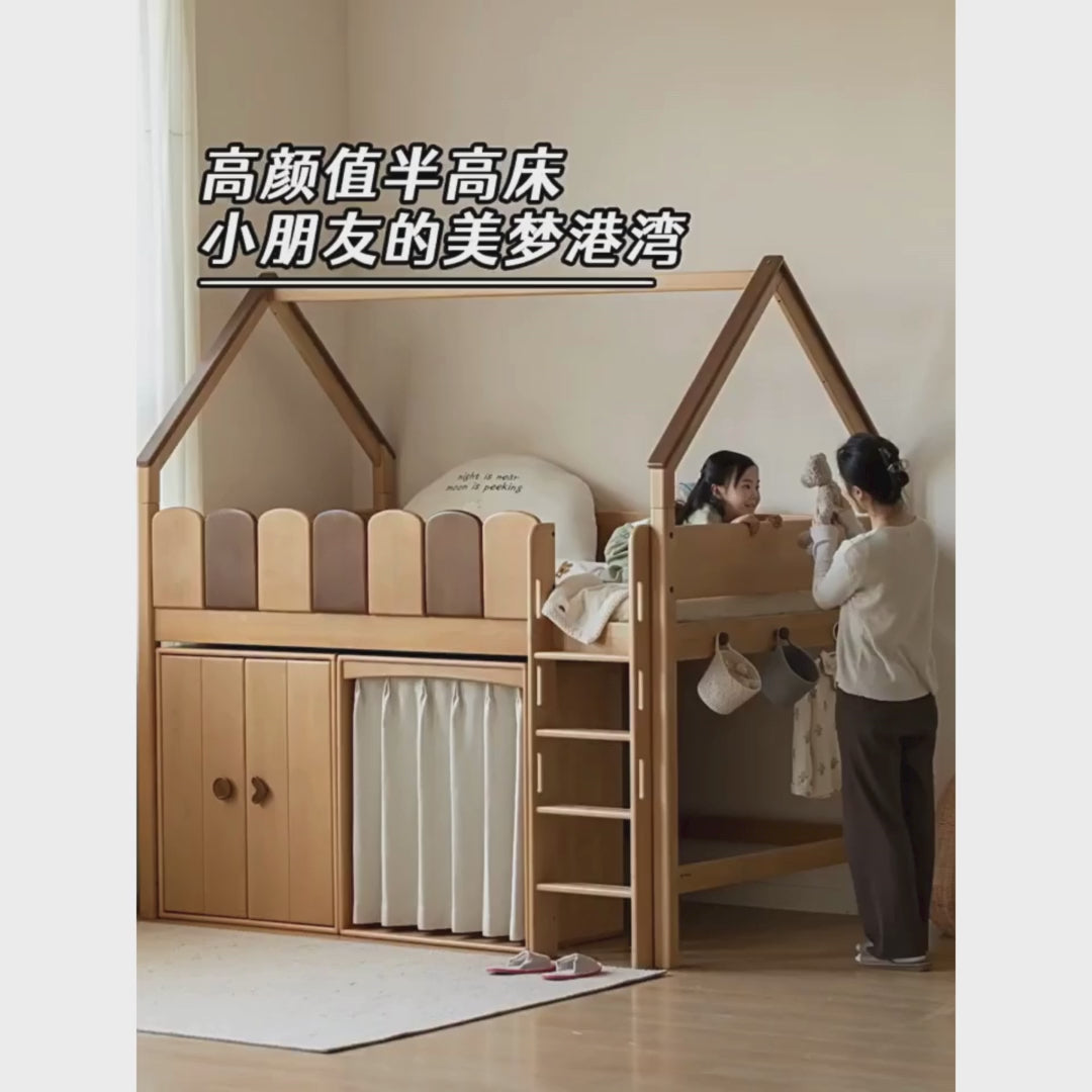 Beech Solid Wood Children's Treehouse Bed Multifunctional Loft Bed
