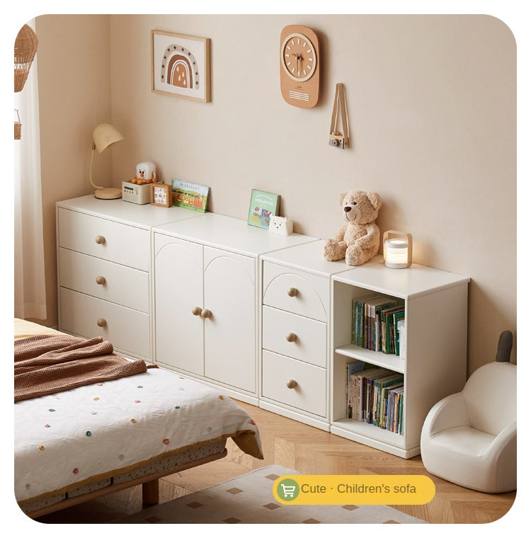 Pine solid wood children's drawer cabinet cream style white combination storage cabinet bedroom bedside storage drawer cabinet. 1.The solid wood part is 100% pure solid wood, and the goods are genuine. 2.The main material is pine finger joint board imported from New Zealand (front and rear horizontal strips of the cabinet, retaining strips against the wall). Connecting wood, handle, base, straight pine board); good toughness and stable nature, The texture is lighter, the texture is straight and less knotted. 3.Auxiliary material paulownia wood is used for backplane and pumping box; corrosion-resistant, wear-resistant, high temperature resistant, unchanged、 It is shaped and not easy to snow. It has been used as a bellows rod since ancient times, and it is also an ancient Chinese material. The famous Qinmu of the generation. 4.The buckling track is an ordinary three-section steel ball slide in stainless steel color. paint Water-based paint is a water-soluble coating that uses pure water as the main solvent and has not been tested. Base/methyl enzyme/heavy metals and other harmful substances, non-toxic and non-irritating odor, children/ Pregnant women/the elderly can use it with confidence.The furniture has been carefully polished many times to And after artificial color repair, coloring, and spraying.