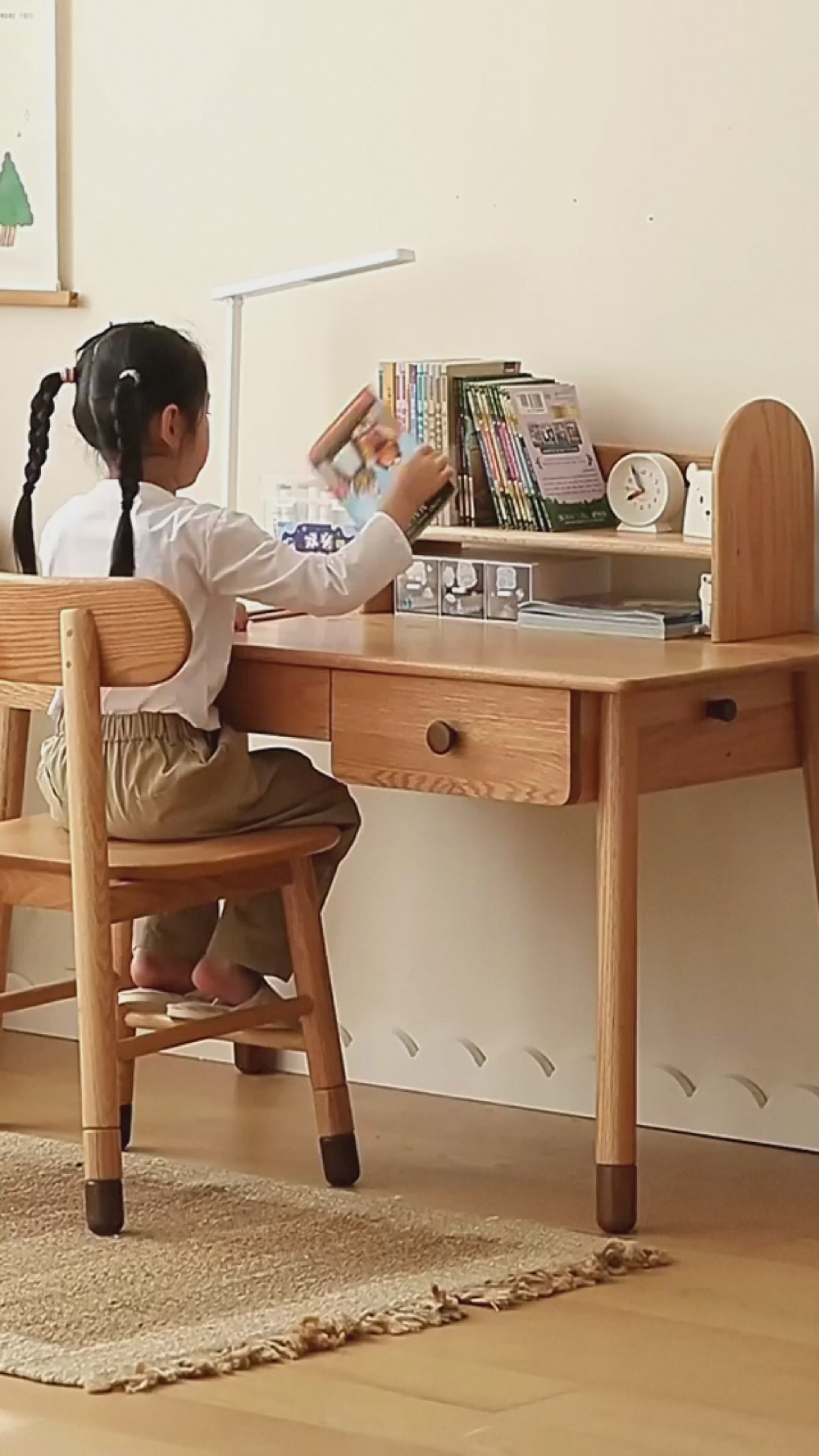 Beech Solid Wood Hand Crank Lift Children's Study Table