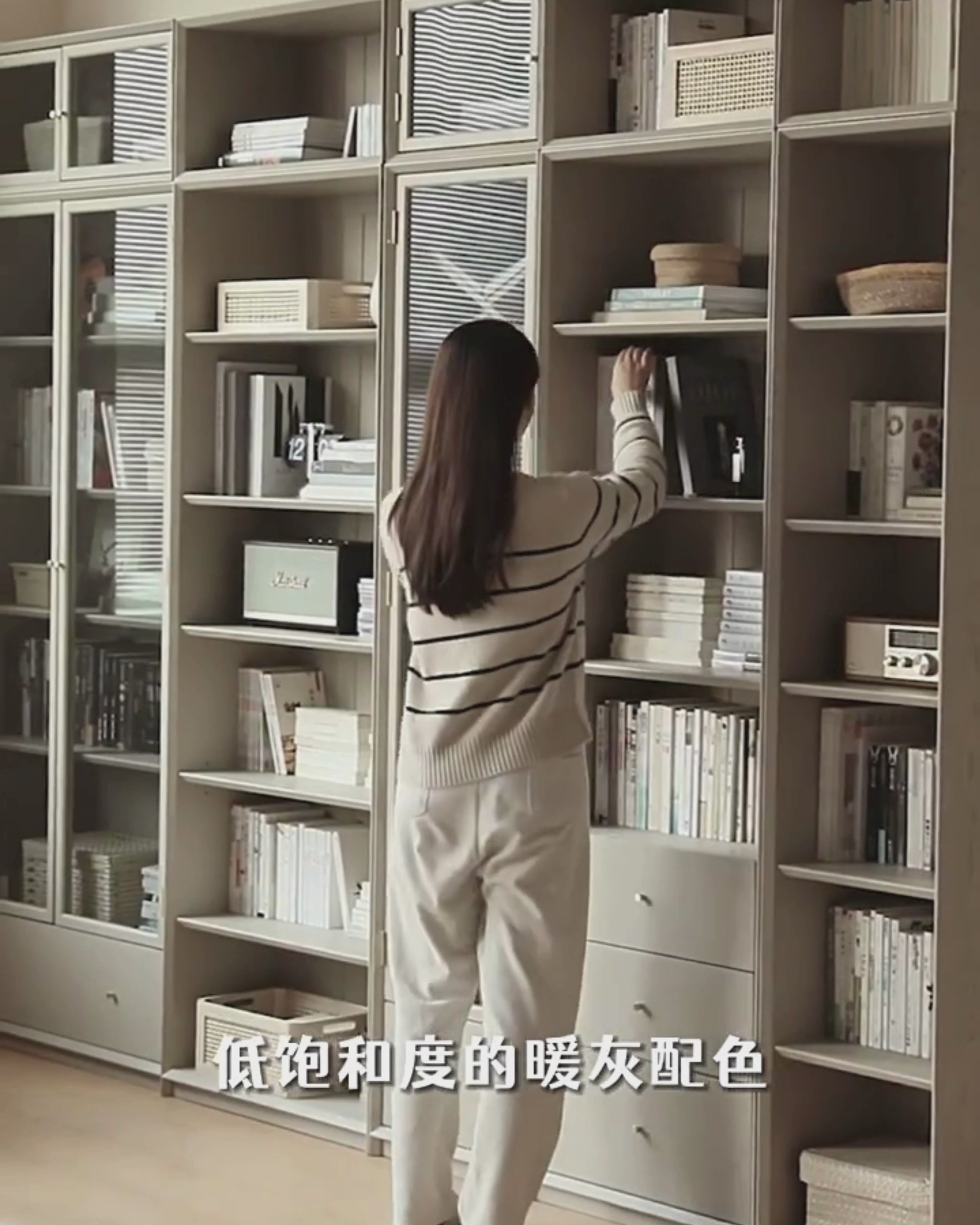 A variety of storage combinations, free collocation, build a family "storage wall" / "library"! The warm gray color with low saturation creates a fashionable and relaxing space atmosphere.