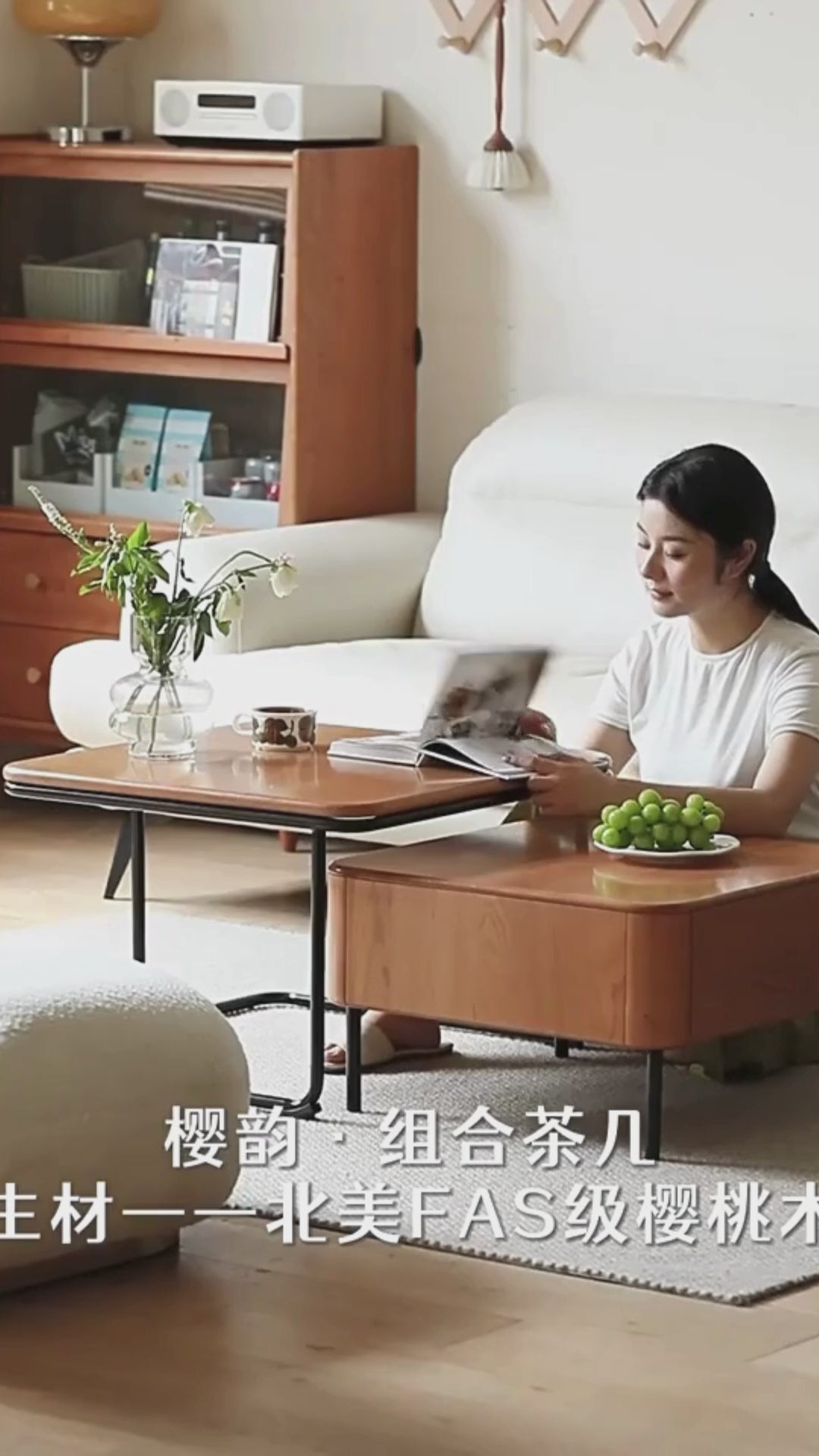 Cherry wood models have been added to star products!Under the beauty of online, the function is still online. The two coffee tables can be retracted freely, and the length and size can be adjusted at any time, so that the living room space can "flow" according to your needs...