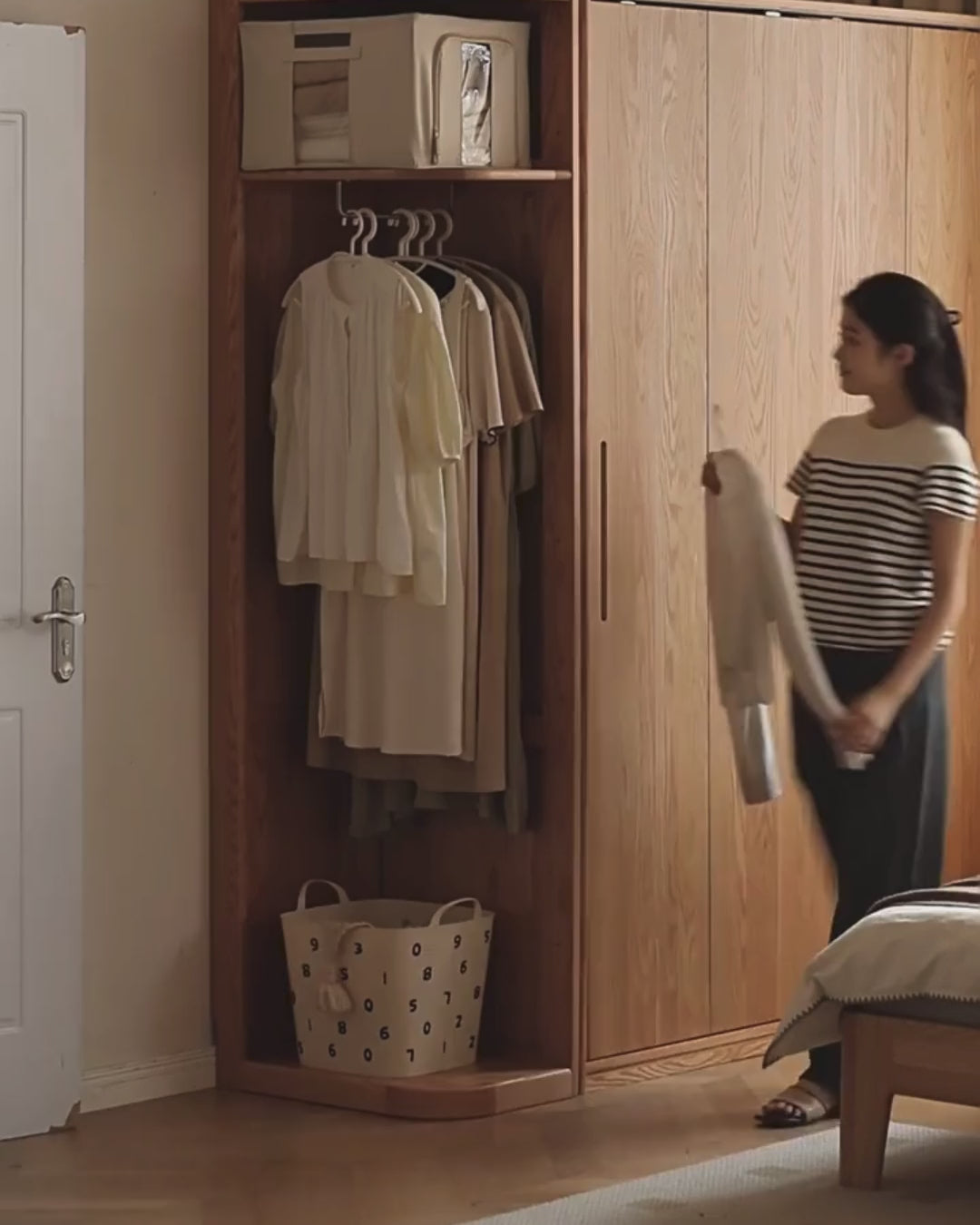 The clothes that have been worn once have nowhere to store and don't want to be put in the wardrobe. Quickly create a "overnight clothes" in the second clean clothes area/the next day's wear and match are all hung up to make the most of the space on the side of the wardrobe.