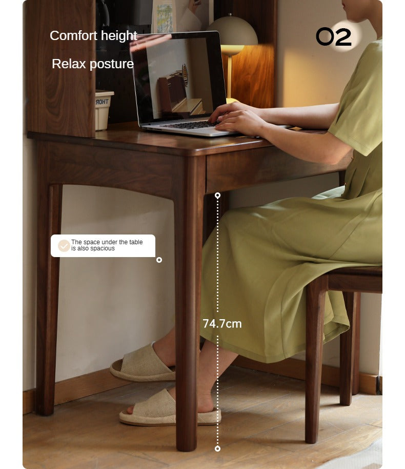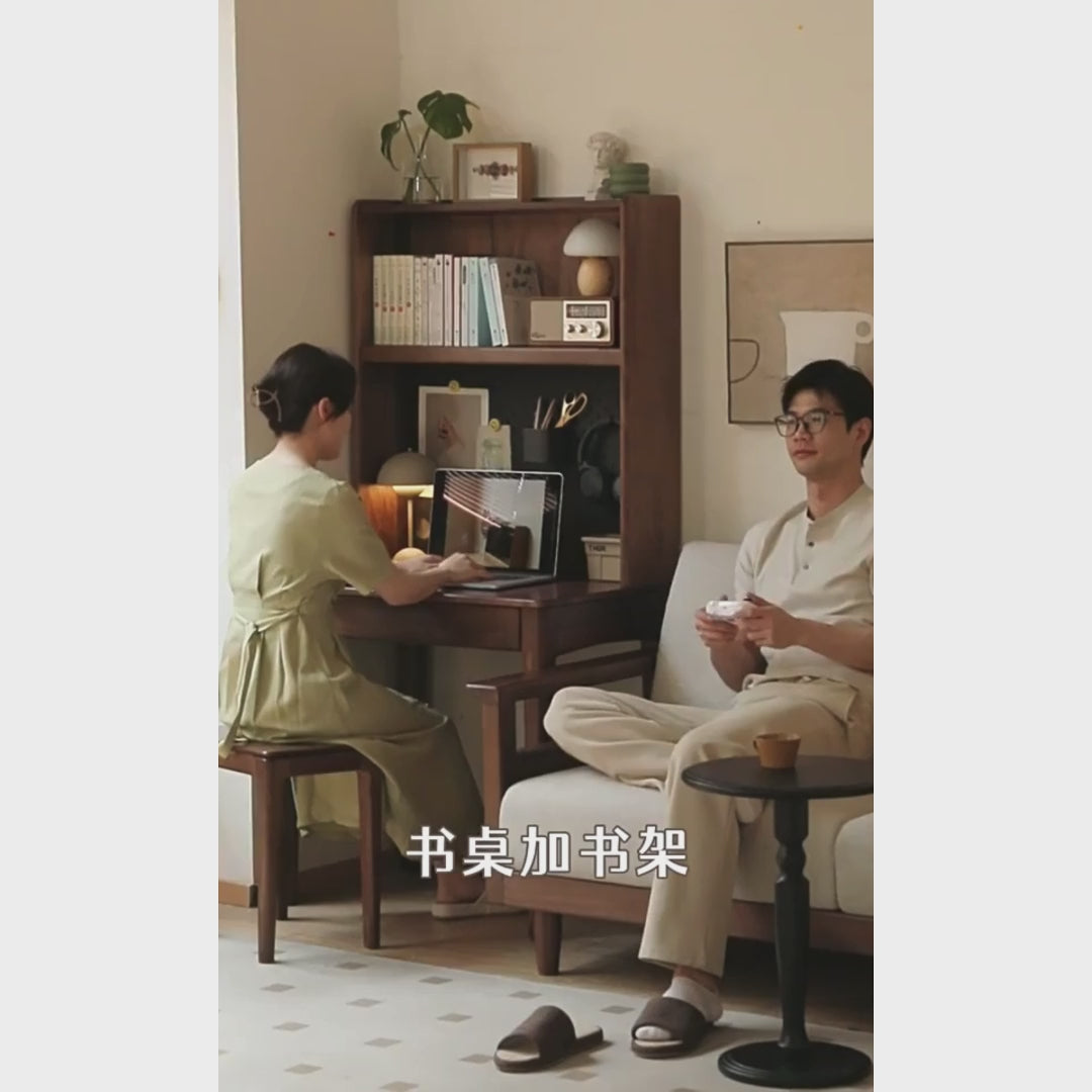 Black Walnut, Oak, Ash Solid Wood Desk Bookshelf