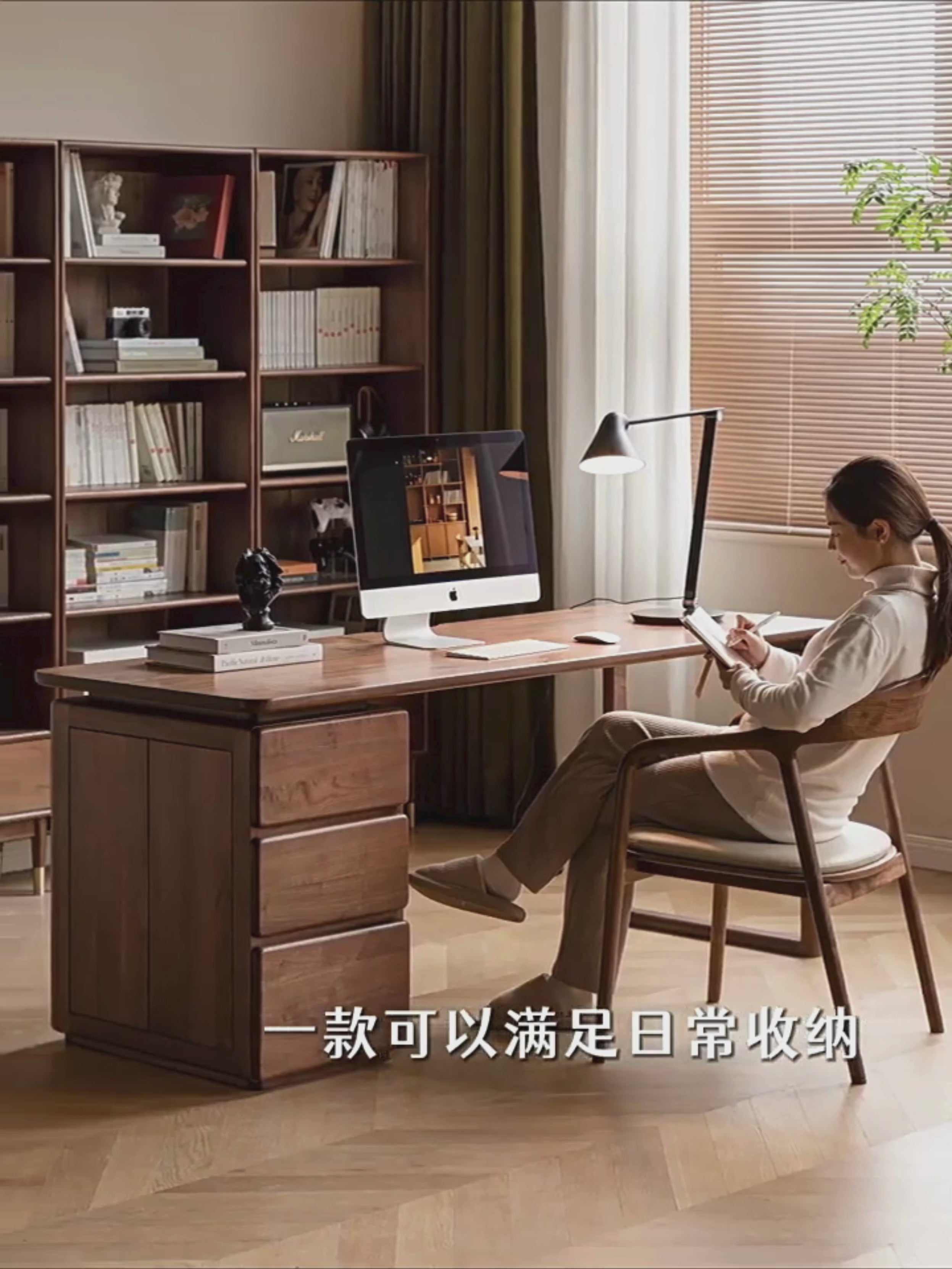 Black Walnut, Sandalwood Solid Wood Desk Cabinet Integrated Work Table