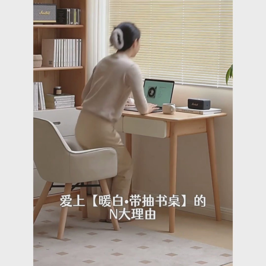 Warm White] Desk with two drawers / not dazzling but has a sense of calm presence Gray, white, and log colors Subtle color matching, highlighting the richness and layers of the home Classic and versatile, stable and peaceful Not dazzling but with a sense of calm presence