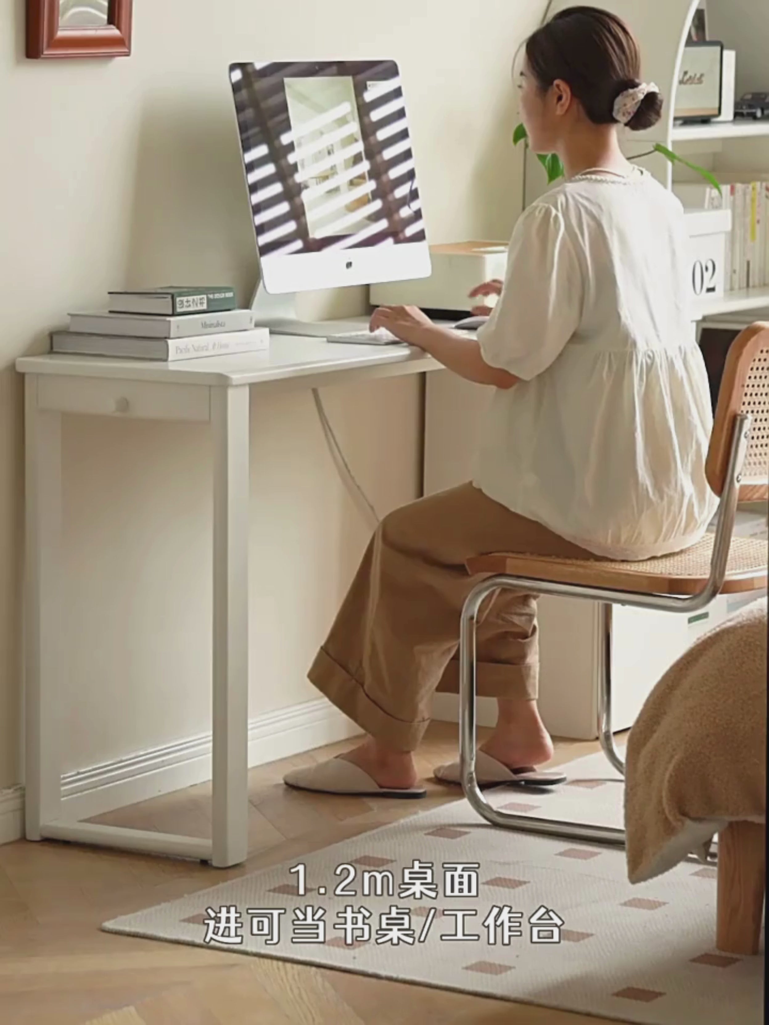 Rubber Wood, Poplar Solid Wood Cream Style Single-Leg Desk