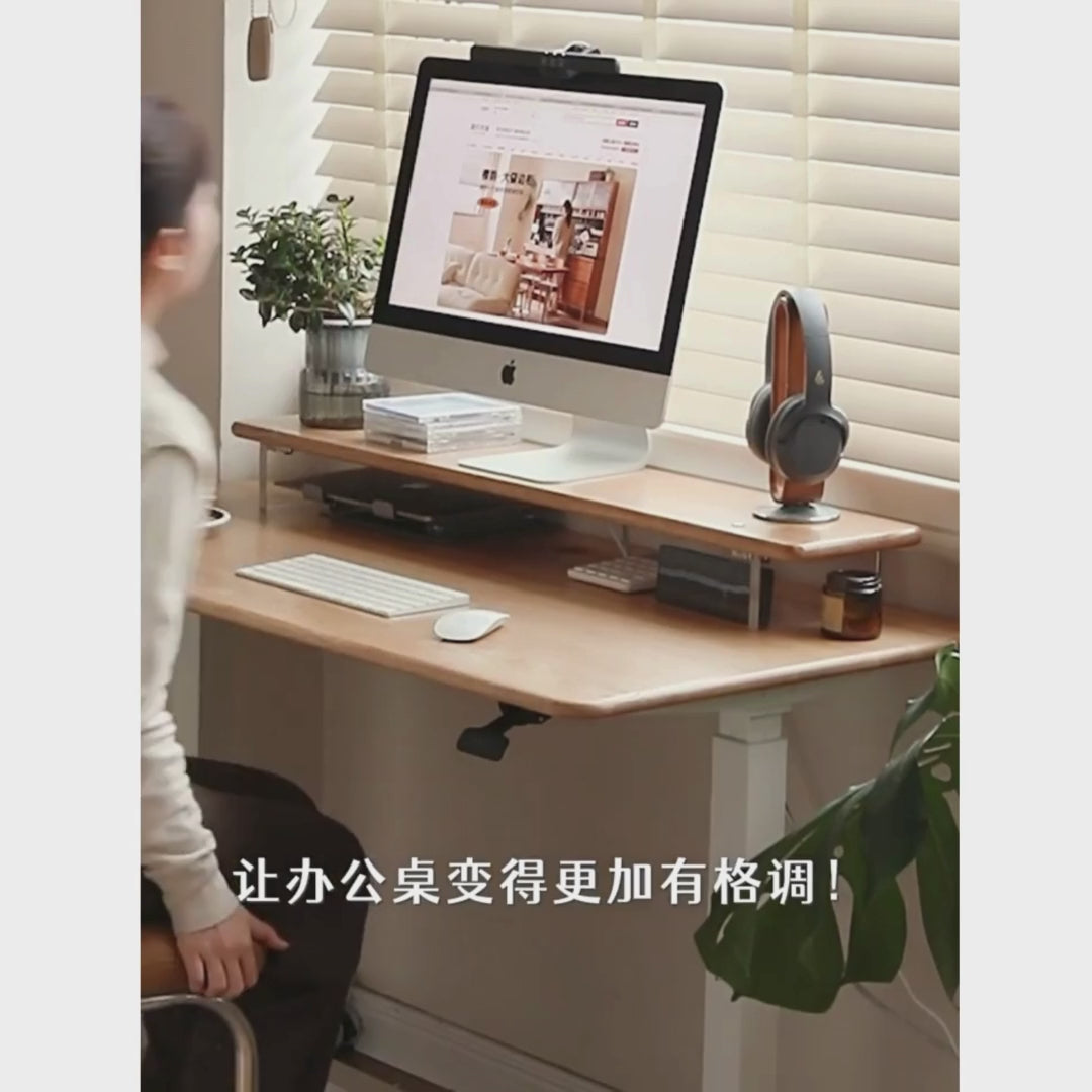 Solid Rubberwood, Oak Solid Wood Desktop Computer Heightening Stand