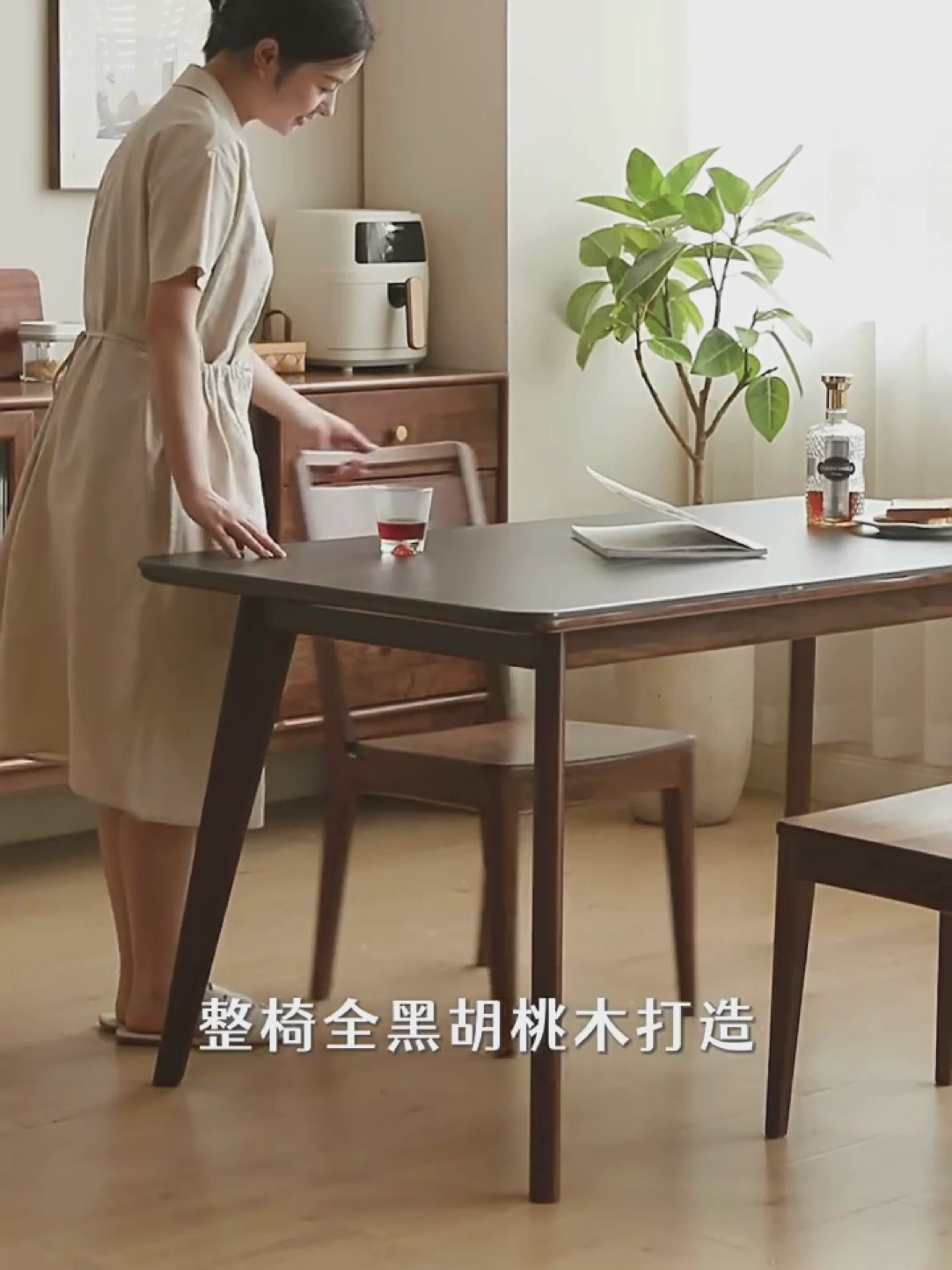 A classic and calm dining chair is full of ingenuity. It is made of black walnut wood with a curved high backrest. It fits the curve of the back at just the right angle. It is very versatile whether it is used with a desk/dining table or alone.