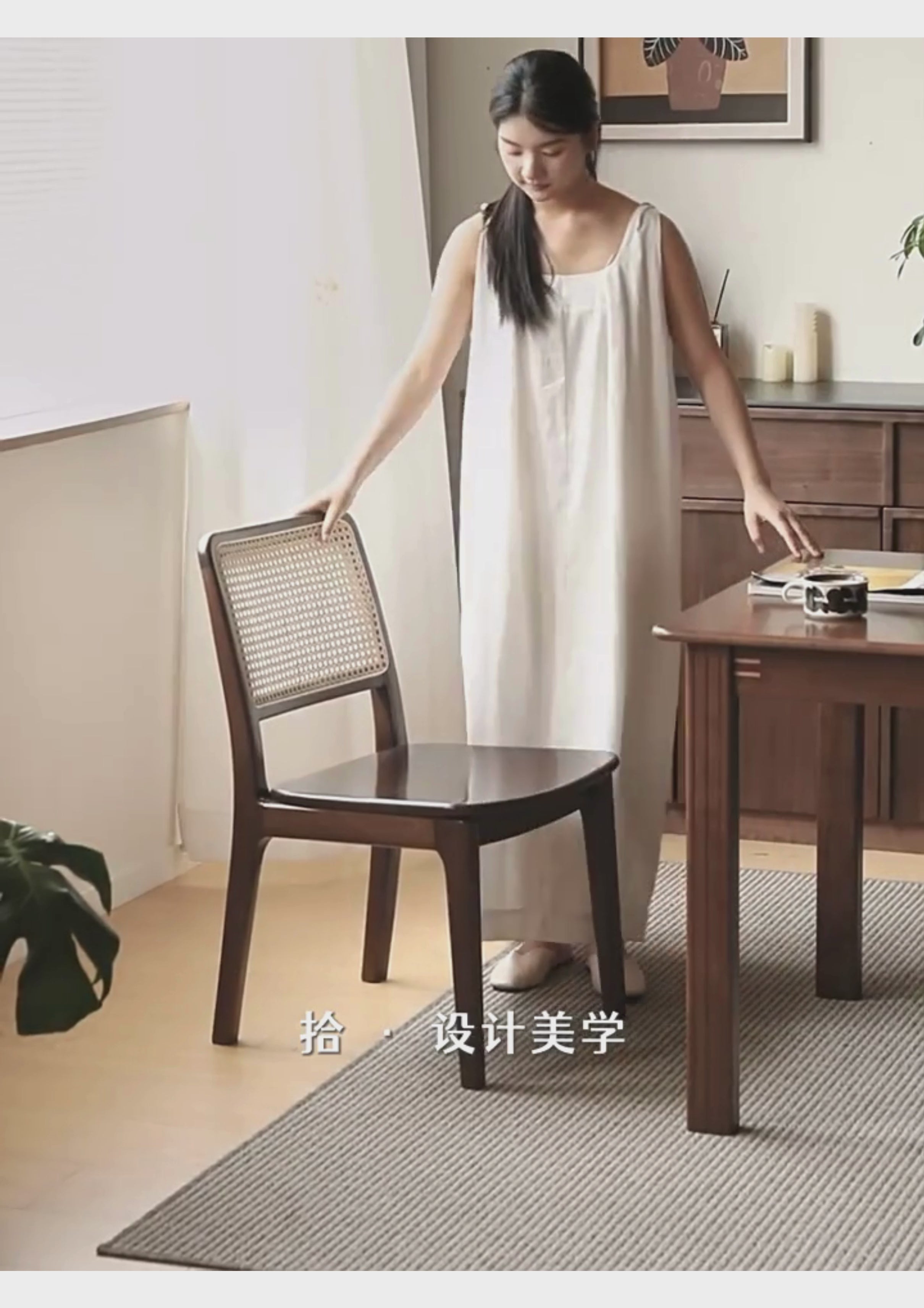 Set 4 pcs Black Walnut, Oak, Beech, Sandalwood Solid Wood Retro Rattan Chair