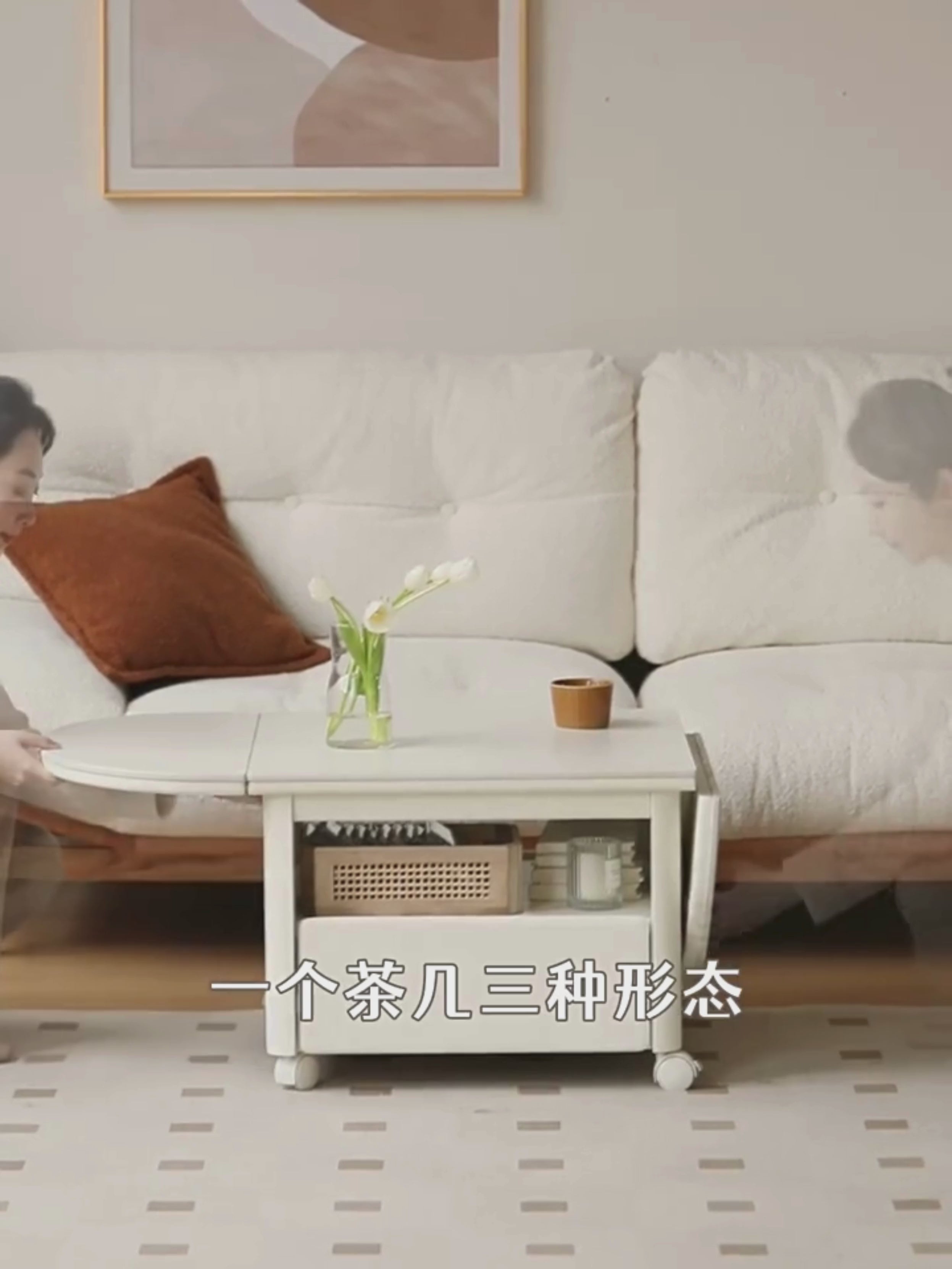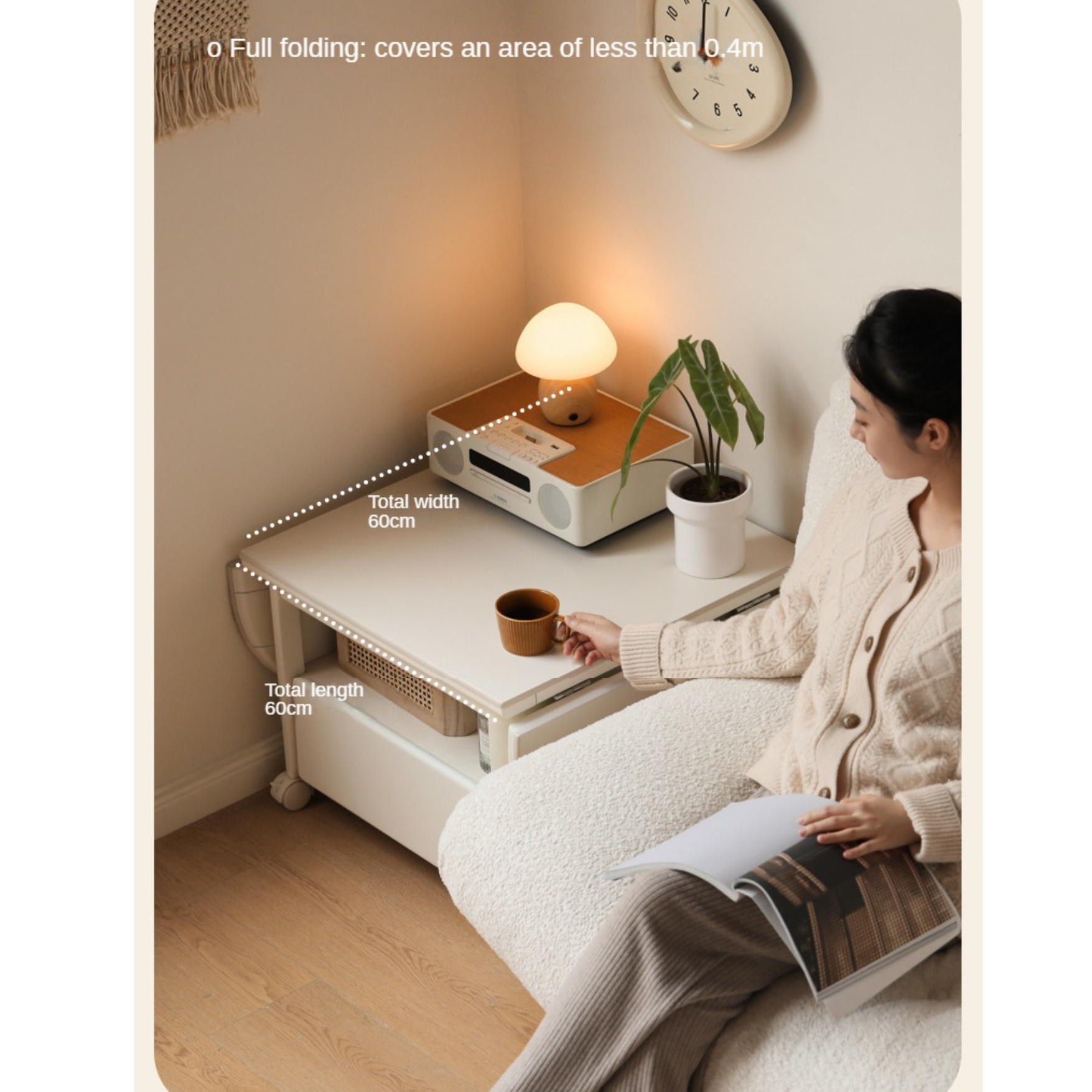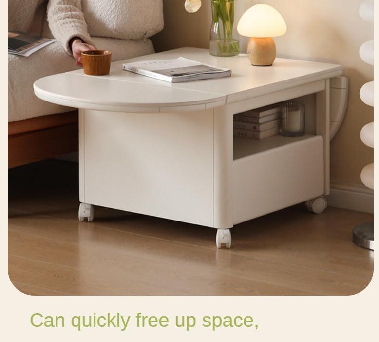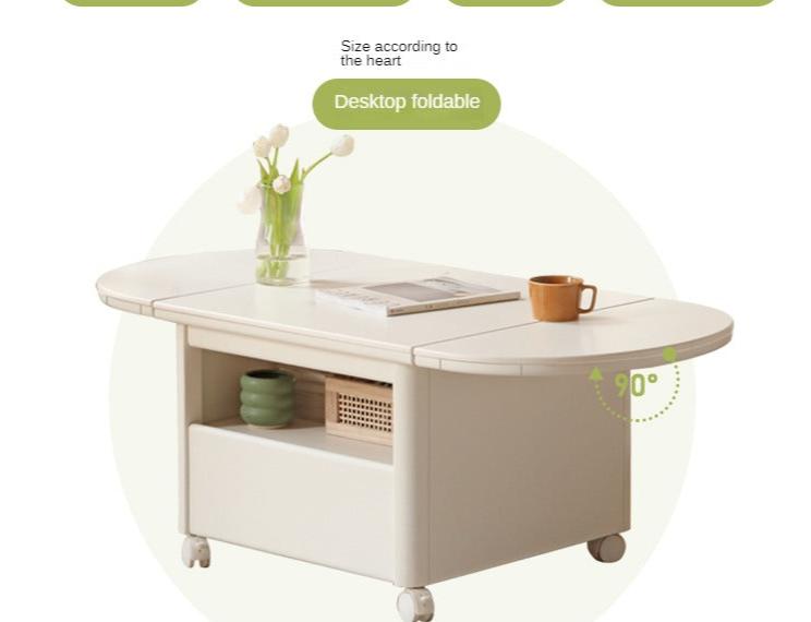 Poplar solid wood folding coffee table, dining table, living room, cream style slate tea table, small apartment, mobile side table