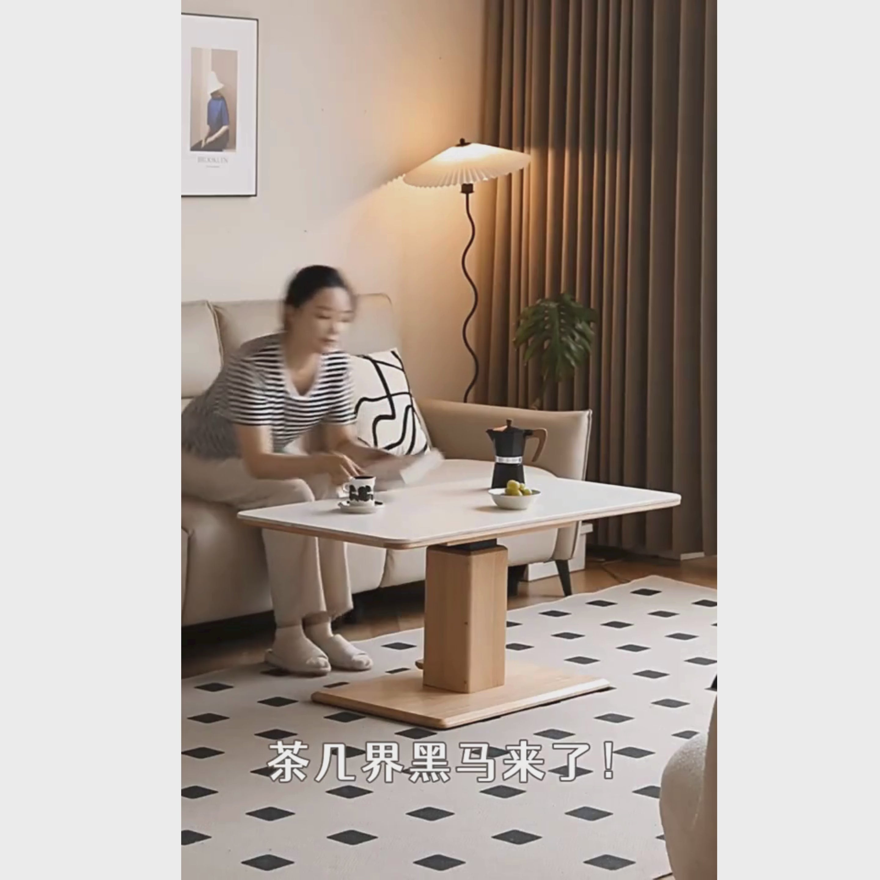 Different from the conventional lifting coffee table, it does not need to be plugged in or wired, and can be lifted flexibly without restrictions. Just step on the bottom footrest.