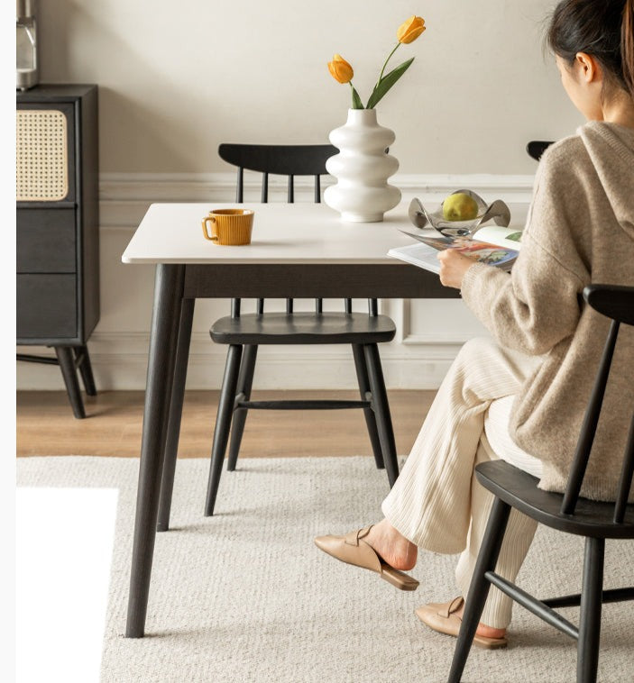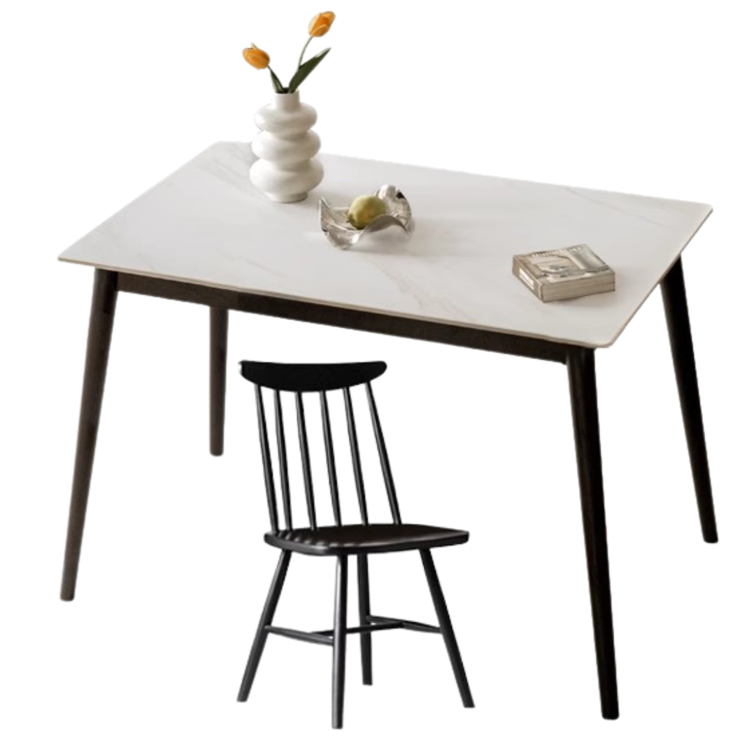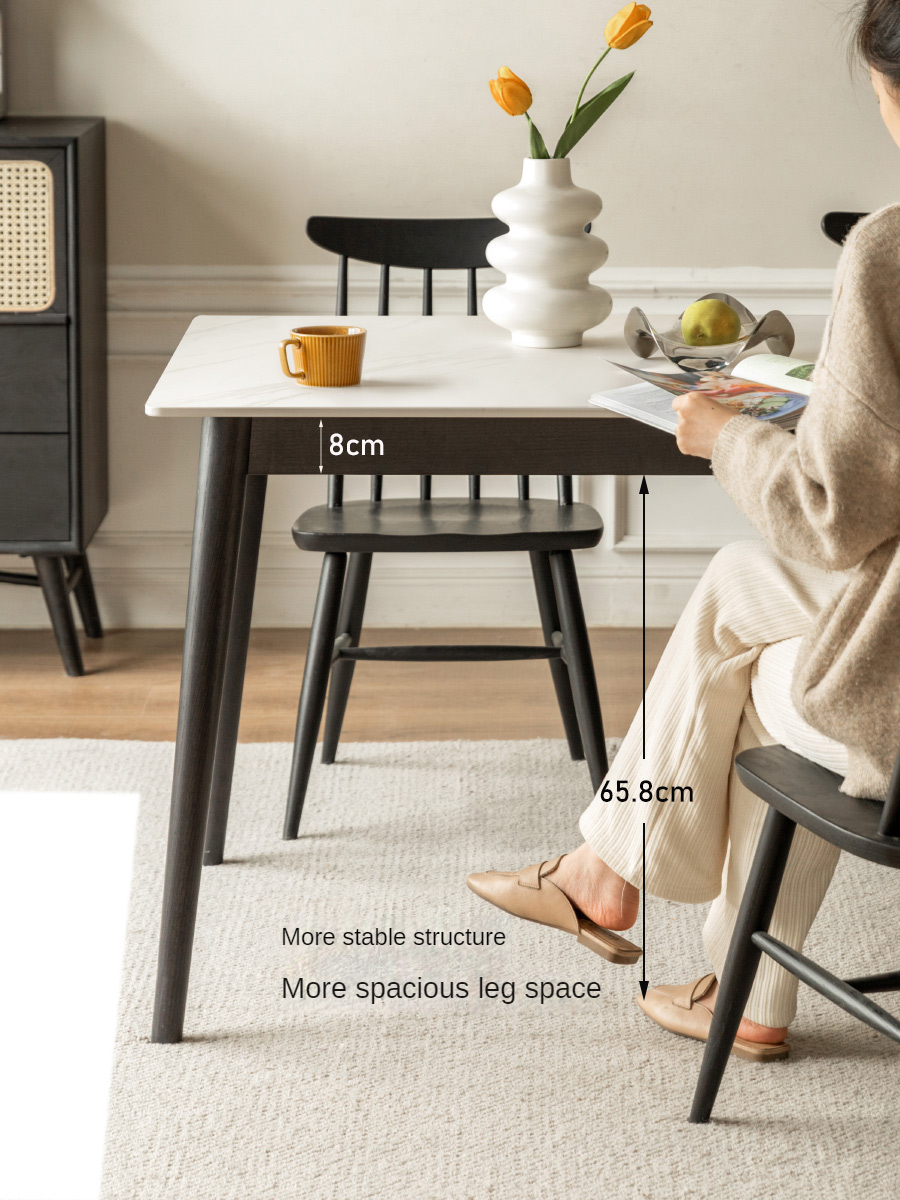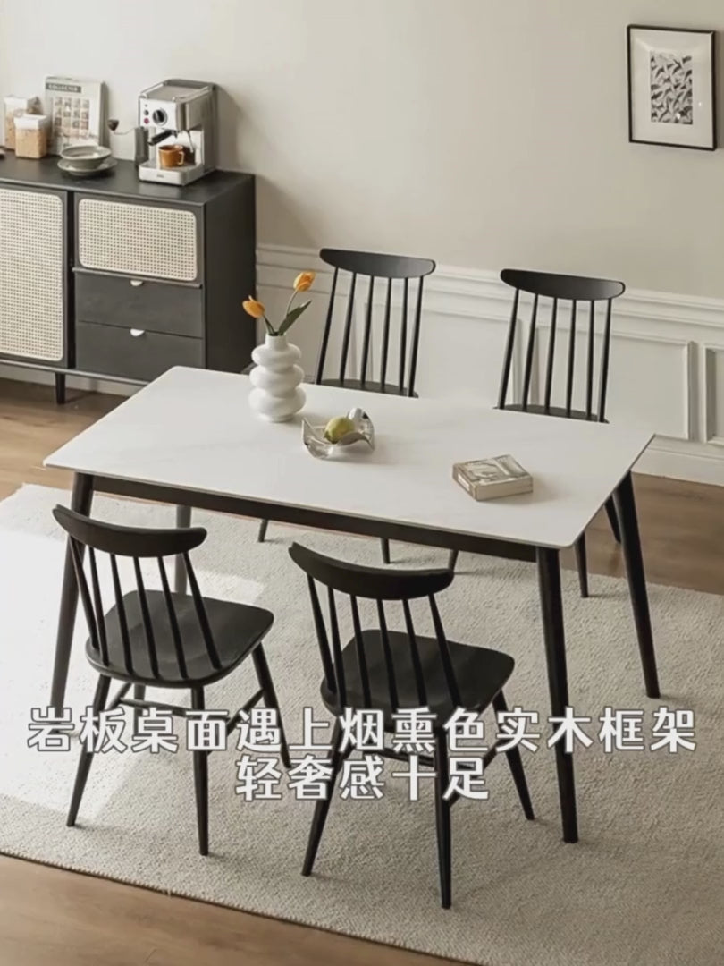 Nice and useful dining table really affect the dining mood Pure white slate table top Meet the Smoked Wood Frame Quite a classic color scheme good surface care direct contact with food When you accidentally get stains, you can clean it with a single swipe, so you don't have to worry about maintaining the table